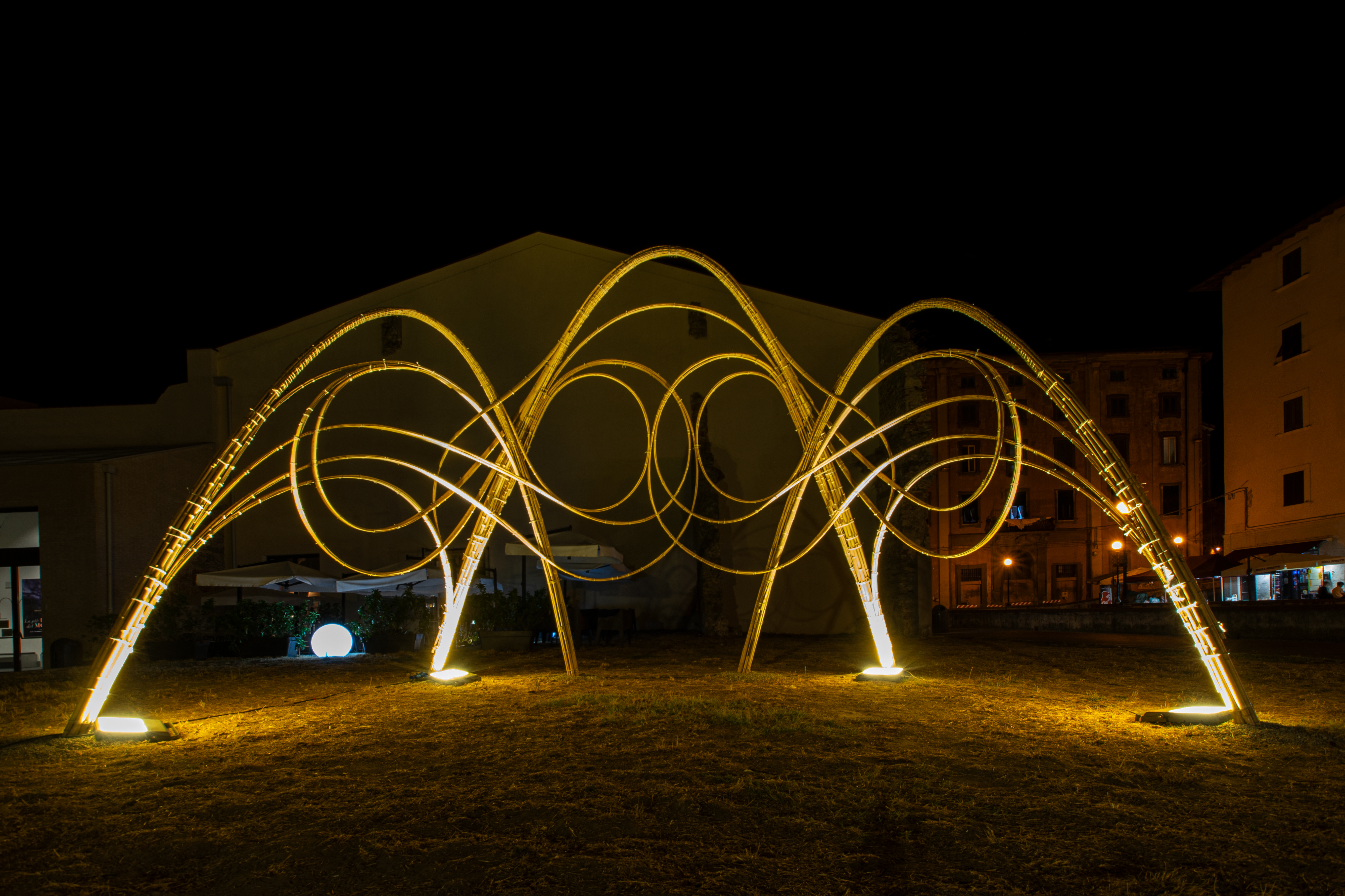 ARUNDO(A) was born as an evolution of the research and experimentation journey initiated by CanyaViva, with the aim of promoting participatory bioconstruction practices, land art, and sustainable self-building. The project enhances local natural resources, such as the Mediterranean cane and bamboo, transforming them into organic and artistic architectural structures.
