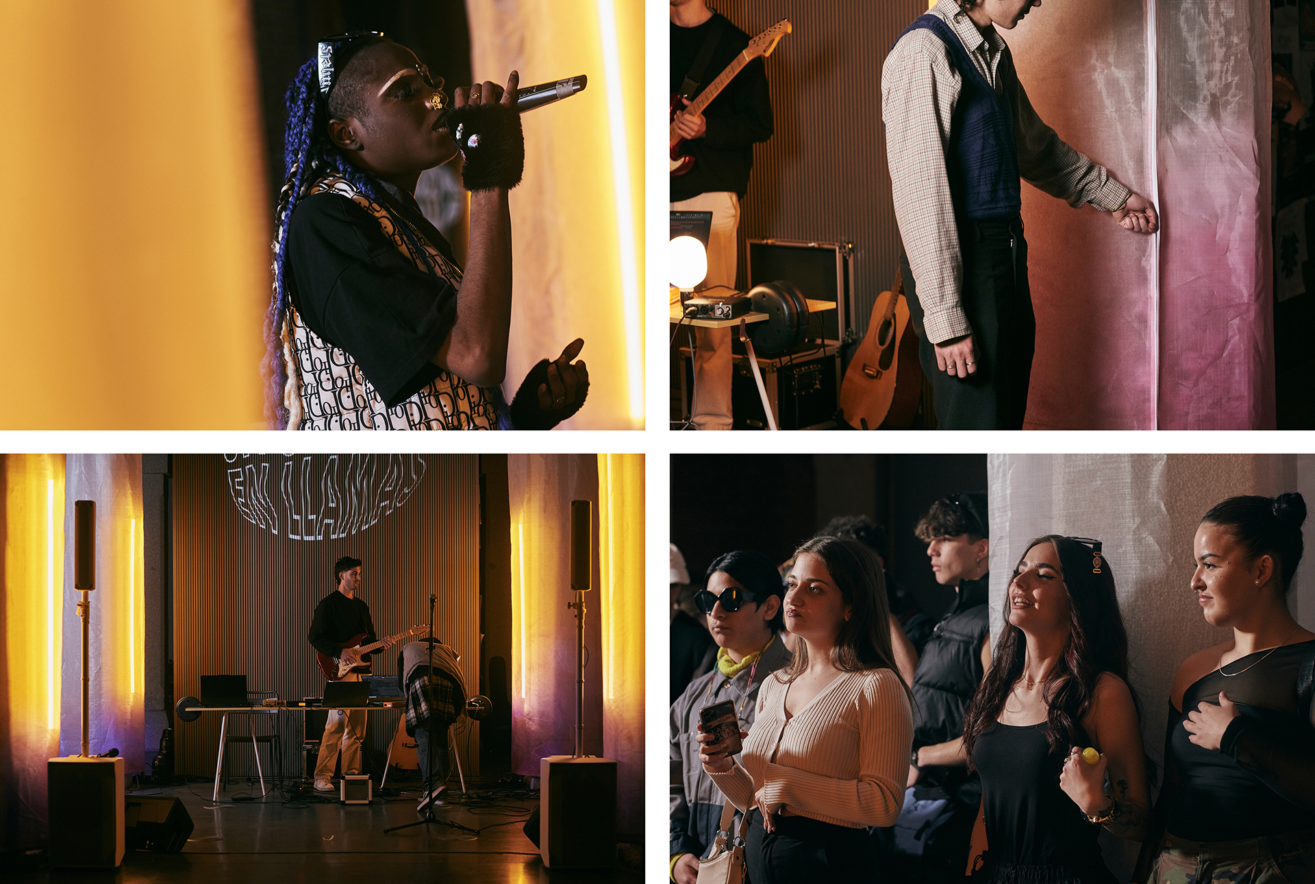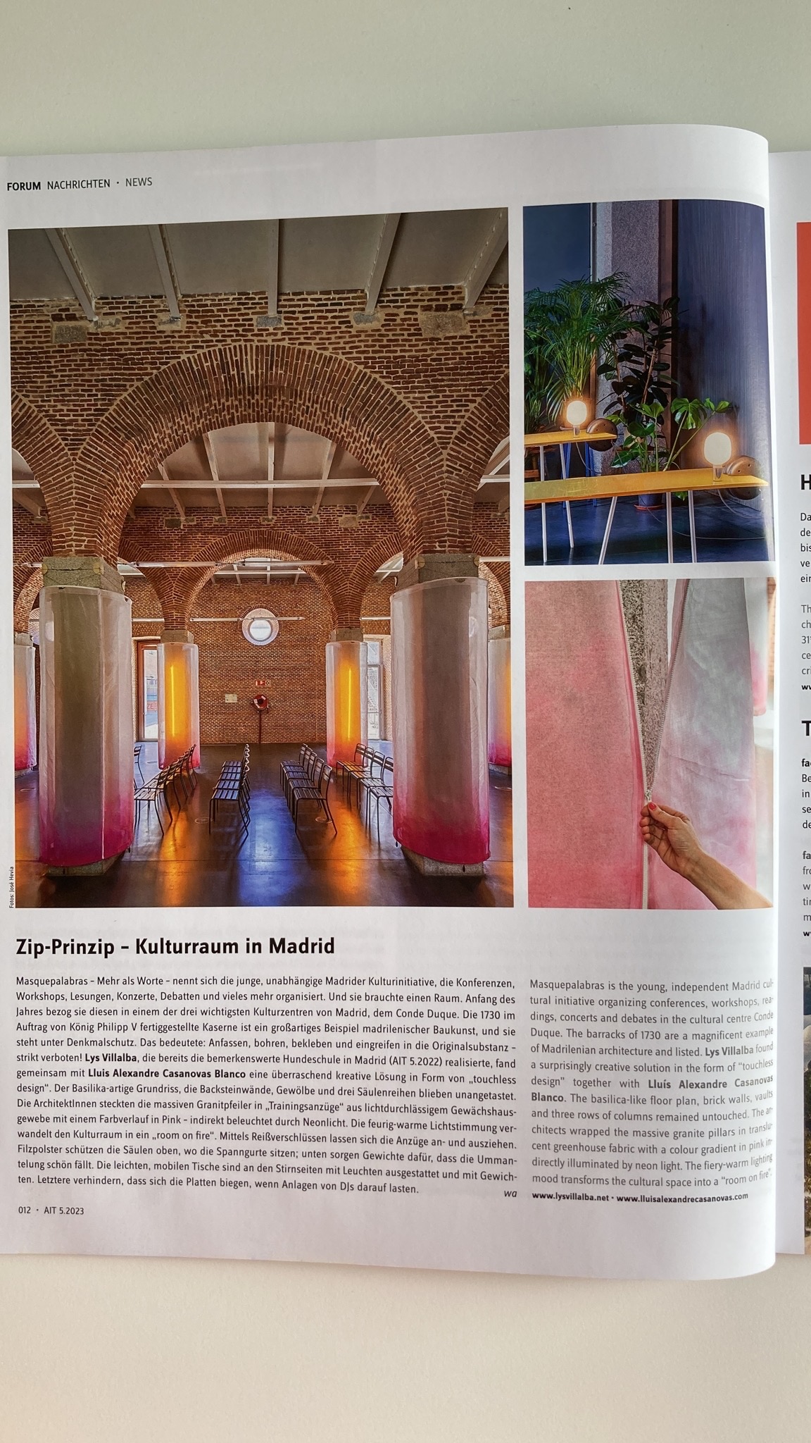 Un Cuarto En Llamas transformed the Sala Polivalente of the Conde Duque barracks, a protected space for its arquitectonical value without altering its original structure nor generating unnecessary waste, applying strategies of low impact. The “Touchless Design” allowed to intervene the space without perforations or adhesives, using lightweight and reversible materials such as translucent canvases and suspension systems. The modular furniture Feat., designed for constant reconfiguration, enables the adaptation of the space without additional infrastructure or excessive resource consumption, promoting sustainable and efficient infrastructures (SDG 9: Industry, Innovation, and Infrastructure).