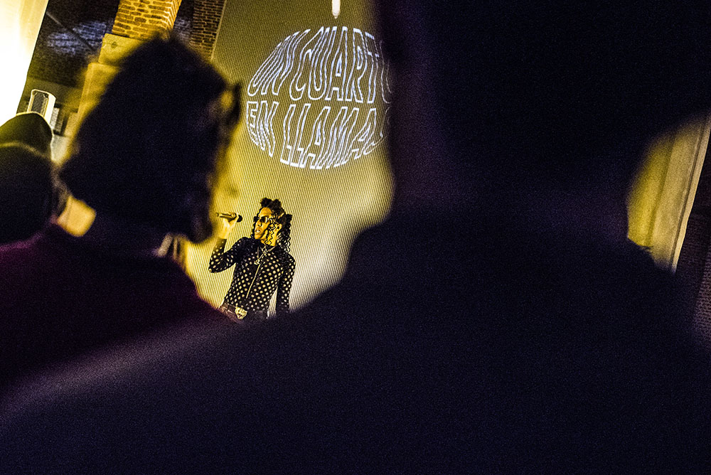 Un cuarto en llamas is a space for dialogue and cultural action led by and for young people, located in the Sala Polivalente of the former Conde Duque military barracks, a large public cultural center of the Madrid City Council. The space is managed by an open youth assembly that designs an independent cultural program. Un cuarto en llamas hosts a variety of cultural activities including concerts, conferences, workshops, performances, poetry readings, theater, video art, debates, dance and more.