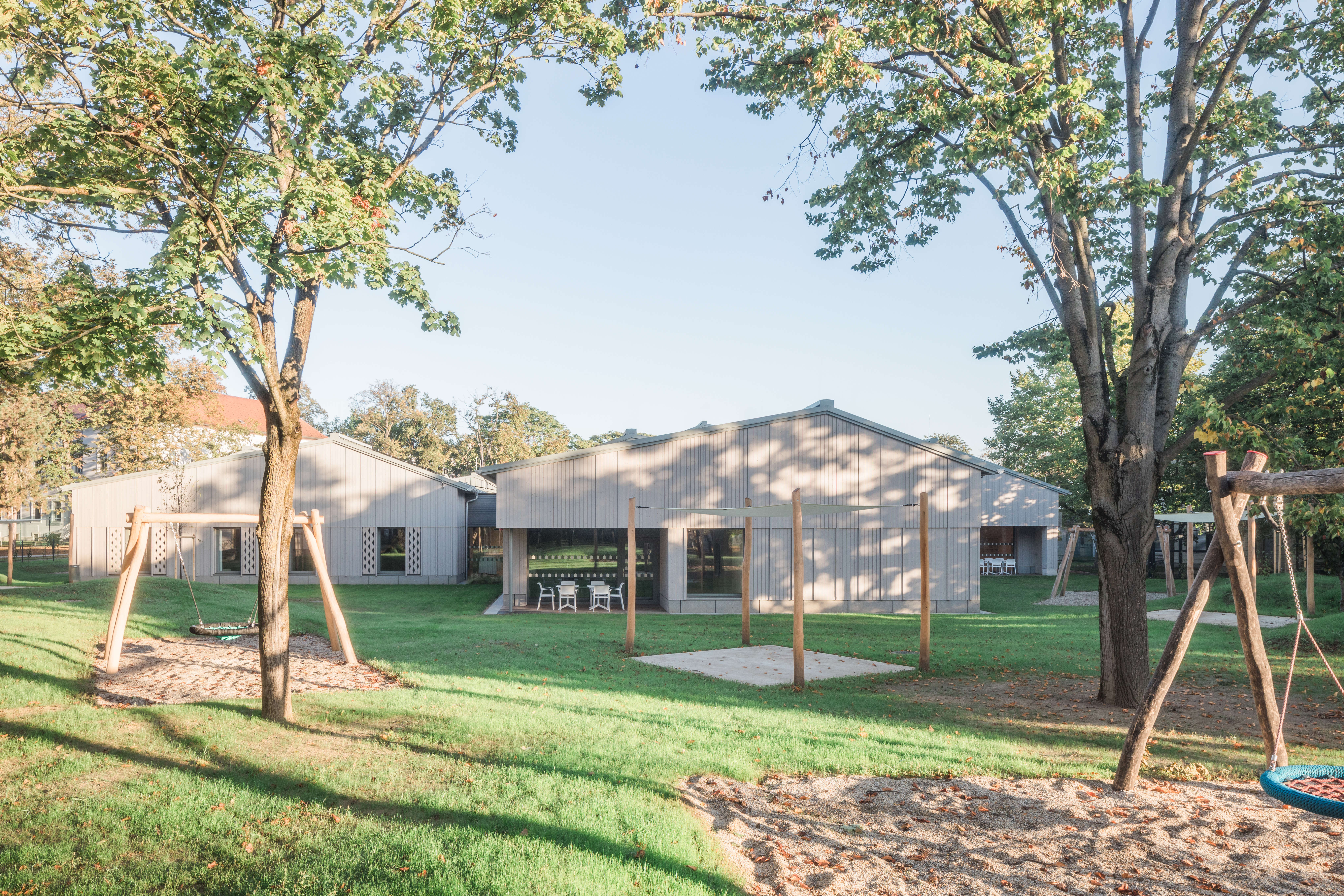 The State Hospital Graz South features a park with large trees, meadows and department pavilions. The extension of the child and adolescent psychiatry department involved a 22-bed ward, a day clinic for adolescents, therapy rooms and reorganizing the outpatient clinic and day clinic for children within the existing building. The new pavillion blends within its surroundings. The new forecourt transitions into an open connecting corridor (the avenue) serving as an entrance, gallery, visitor and waiting area.