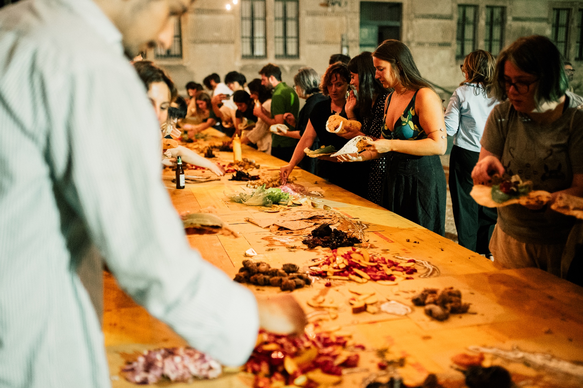 Editorial and graphic design workshops provided tools to explore the forest and village, resulting in guides and board games. Over three years, the Nutrimenti Laboratory transformed daily meals into shared rituals, reinforcing bonds, inspiring new recipes, and blending sacred, profane, and convivial elements while involving local businesses.