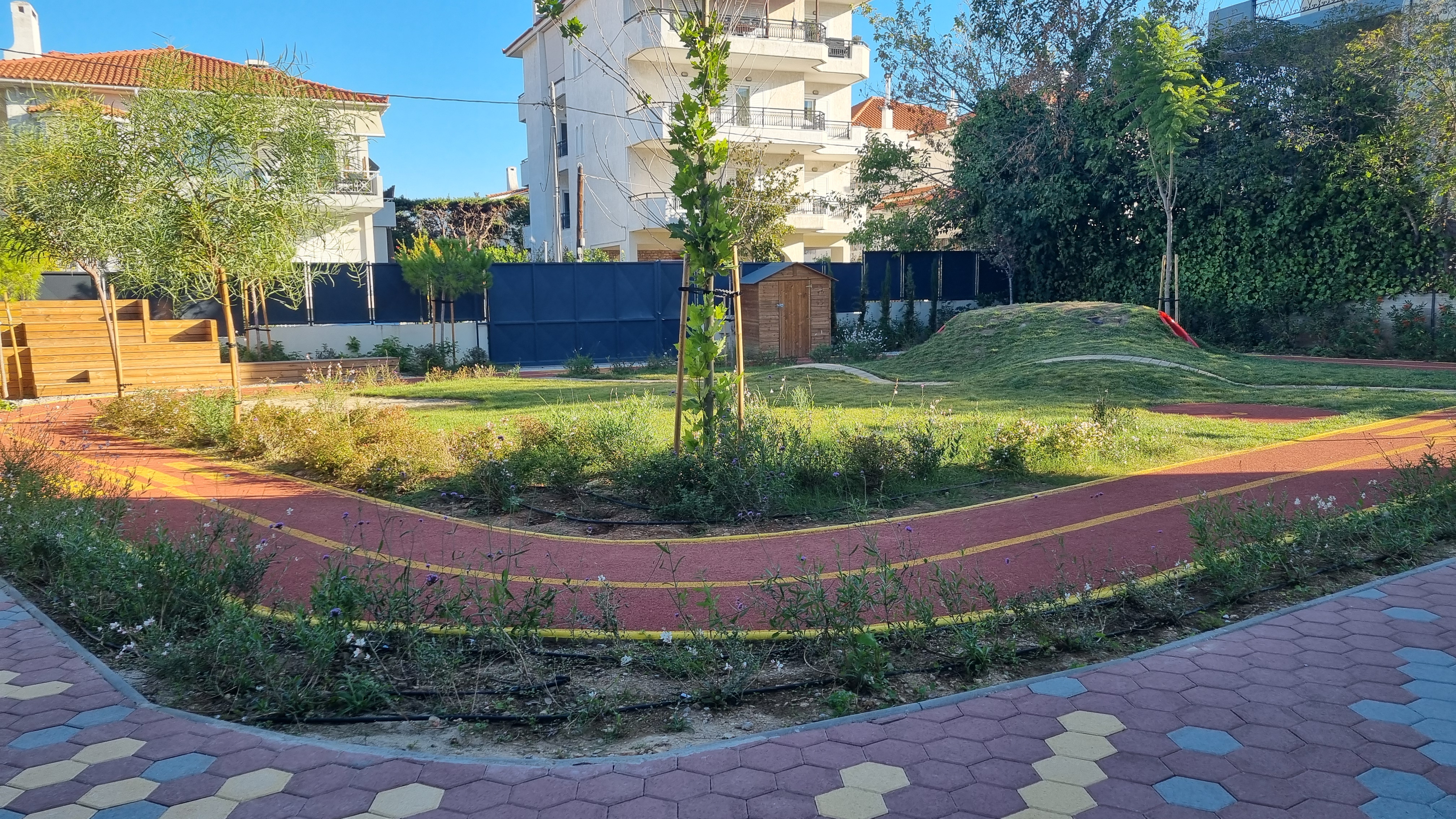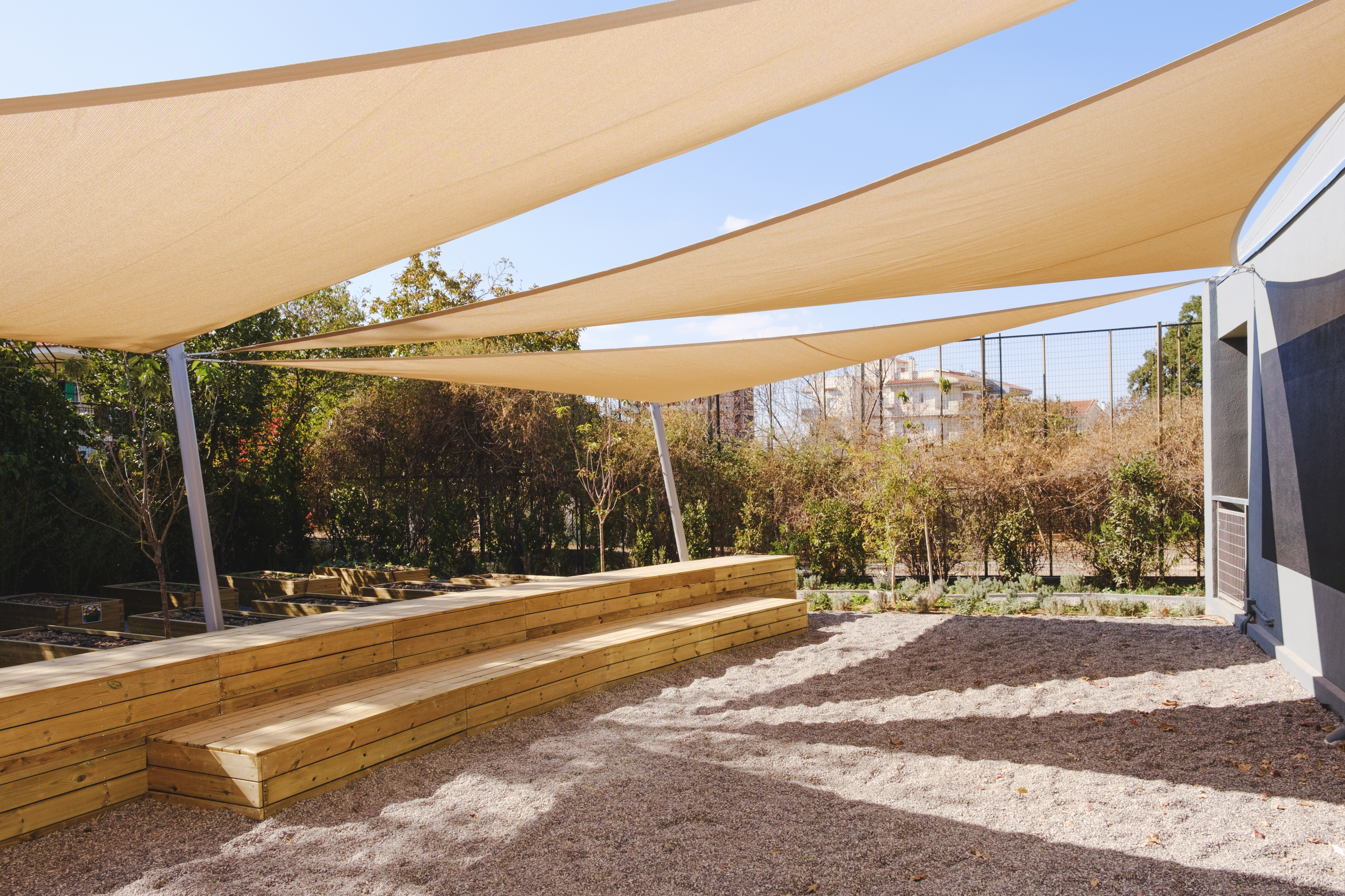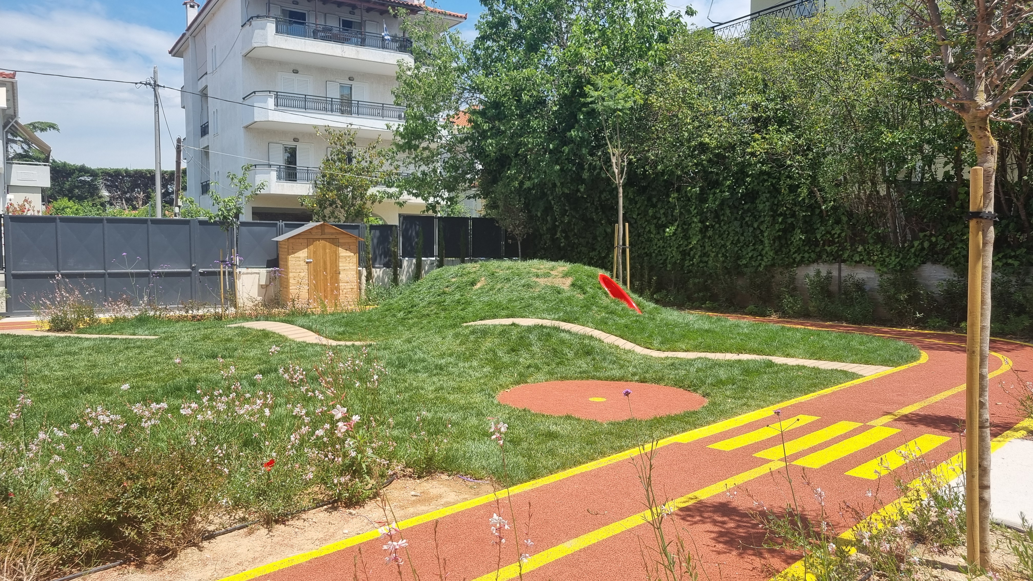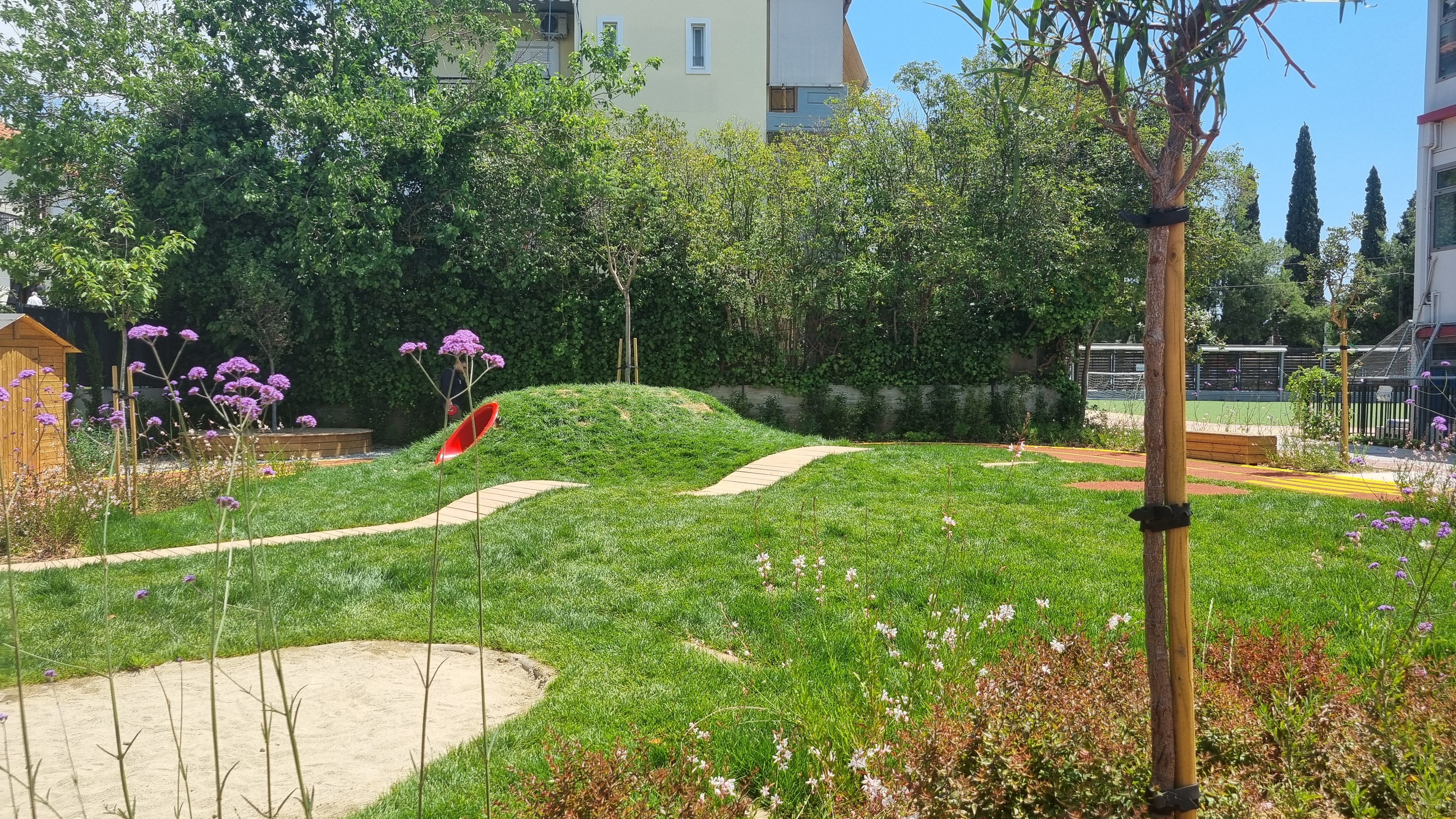 In contrast to the typical asphalt-covered schoolyards in Greece, this project