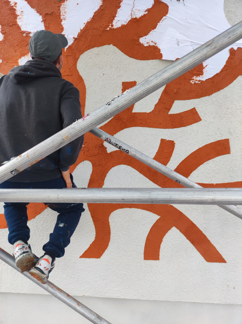 Gdynia is a city on the coastline, it was built with a harbour at its focal point, so its existence depends on utilising the proximity and the resources of the sea. A macroalgae named Fucus vesiculosus is the main visual motif of the mural - it is a species of seaweed that was common in the Baltic until the second part of the XXth century, when it went extinct due to heavy exploitation and pollution. This story strikes a chord with the local community, as Fucus vesiculosus used to be a familiar sight and a natural plaything found on the beach - now it is no more. This heritage-based narrative enabled us to communicate the loss of native species and diminishing biodiversity in the heavily polluted Baltic Sea through a local perspective. According to Blanka Byrwa, the designer responsible for engineering plaster, if brought back and sourced responsibly, Fucus vesiculosus could become a steady, local source of sodium alginate - a natural binder that could be used in locally manufacturing various materials, like bioplastics.