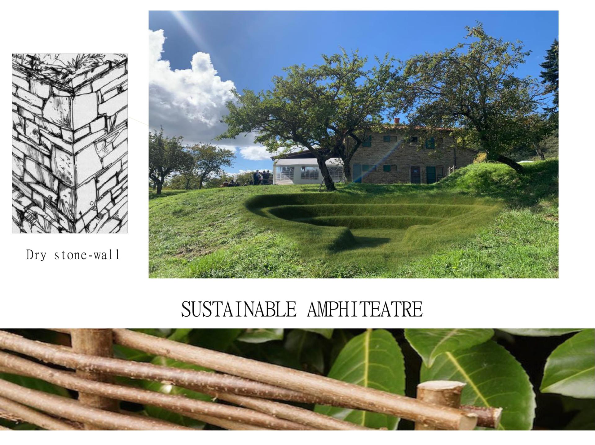 We aim to achieve these objectives by building the living architecture shelters using autochthonous, zero km plants that preserve the natural balance of the environment. The plants and trees have numerous beneficial properties and provide habitats, food, and shelter for insects and other animals (see attachment scheme). The gradual growth and ongoing maintenance of the green domes and the natural theatre is a collaboration between people and nature. All the structures, like the natural theatre, follow the natural shapes of the landscape. The yurts are old nomadic tents and can resist low temperatures and high winds thanks to their wool covering and round shape, these structures will be built using chestnut wood from the surrounding forests and will be powered by renewable energy. Several photovoltaic panels will be arranged around the area, and there will be a small hydroelectric mill powered by a spring that runs through the property, also providing water. The food forest will be made up of local plants, trees, herbs and vegetables, making it as environmentally sustainable as possible. All the structures are low-cost and low impact, and respect the environment. They also have a commercial added-value due to energy-saving strategies. This economic feasibility is a key factor in attracting new interest in the community at large. We plan to disseminate these good practices through open-days, lectures, workshops and online educational initiatives at local, national, and European level.