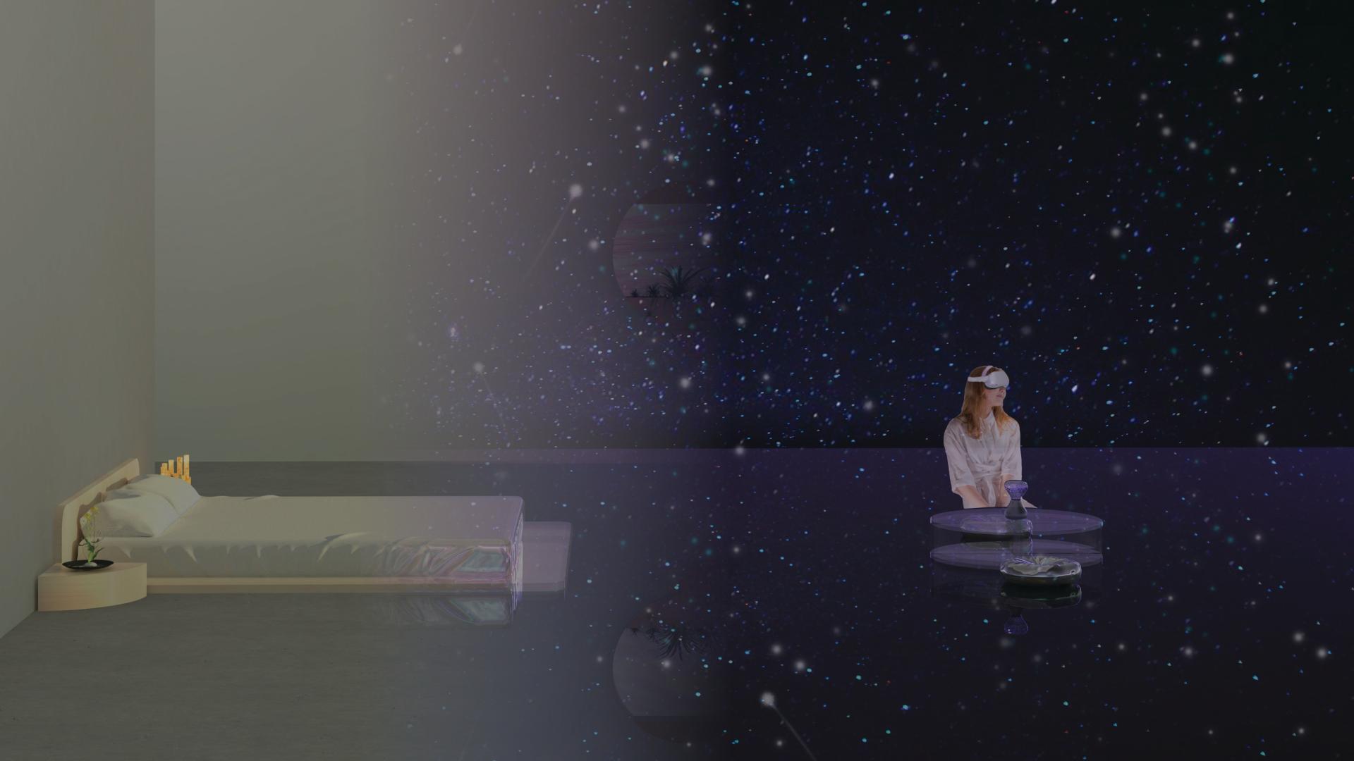 DoubleRoom has two faces: the first grounded in the material world- rooted in research of biophilia and rituals of ancient civilizations. In this first face, five modern artifacts are designed around stimulating the 5 senses. These artifacts bring mindfulness and meditative acts into everyday routines, creating rituals to improve wellbeing. The second face of the room lives in the virtual world, and utilizes each of the static artifacts to enter a dreamlike space in nature inspired by the objects themselves. This expands on the possibilities of meditative design and using technology in an embodied way to stimulate the inner consciousness.