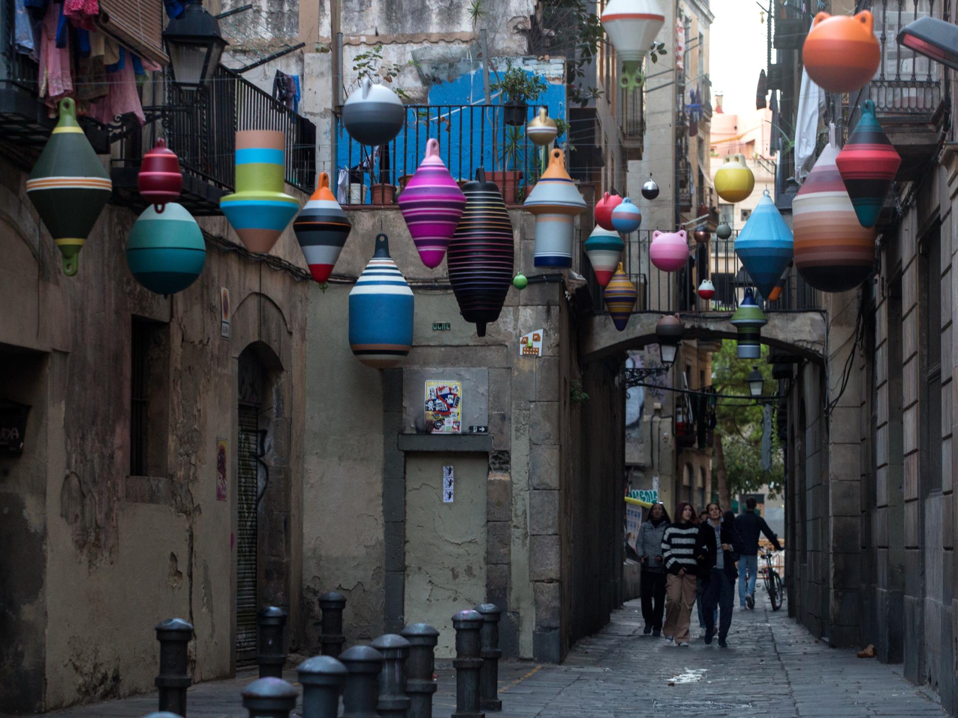 Urban artists and architects: installations in public space that interacted with the passersby and the historic buildings of the old city of Barcelona, springing off the discussion about how we would like our public space to be, bringing art and color into the streets, create a dialgue between architectural historic patrimony and contemporary art