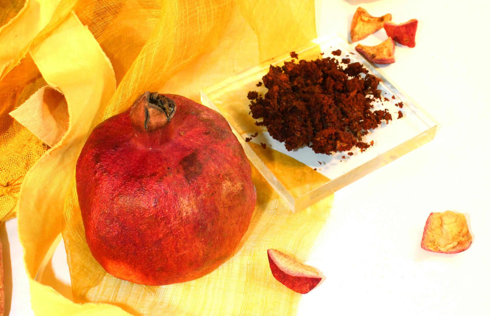 To tackle the toxicity of the textile dye industry that harms humans and the environment Dyeluxe develops 100% natural dye pigments from by-products of the food industry coming from processing waste of juices and restaurants like turmeric, pomegranate or avocado. It introduces a new raw material resource that is safe for the environment and health, while reducing the circularity gap within the food and fashion industry simultaneously. Besides being a valuable colorant for the fashion industry these natural food by-product pigment extracts can have a positive influence in other industries as well as they are capable of coloring a range of materials such as algae based biopolymers, wooden components or applied as paper printing inks.