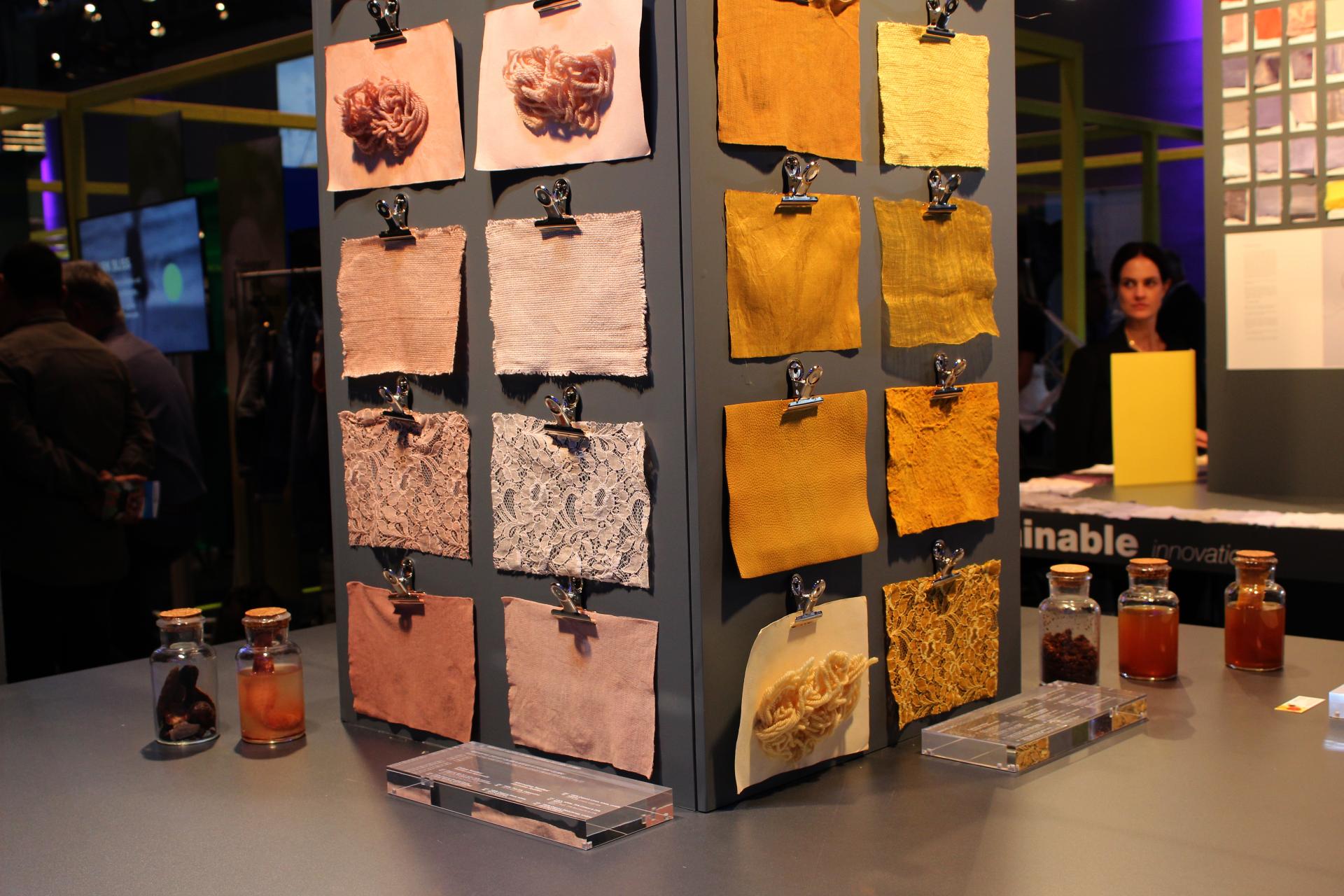 National & European design collaborations & Showcases: through word of mouth and winning an international sustainability award, visibility has been raised around Dyeluxe, which attracted national design collaborations to experiment if the pigments could be applied onto different applications. These collaborations proved the pigments can colour wood, paper, bio-based sequins and the dyed textile can be attached with water-base glue onto acoustic panels as surface coating. Many of these experiments were then invited to exhibitions such as the Munich Fabric Start or Dutch Design Week where the European industry connections were introduced as SME fashion brands and natural dye houses interests were peaked in integrating it into their production processes.
