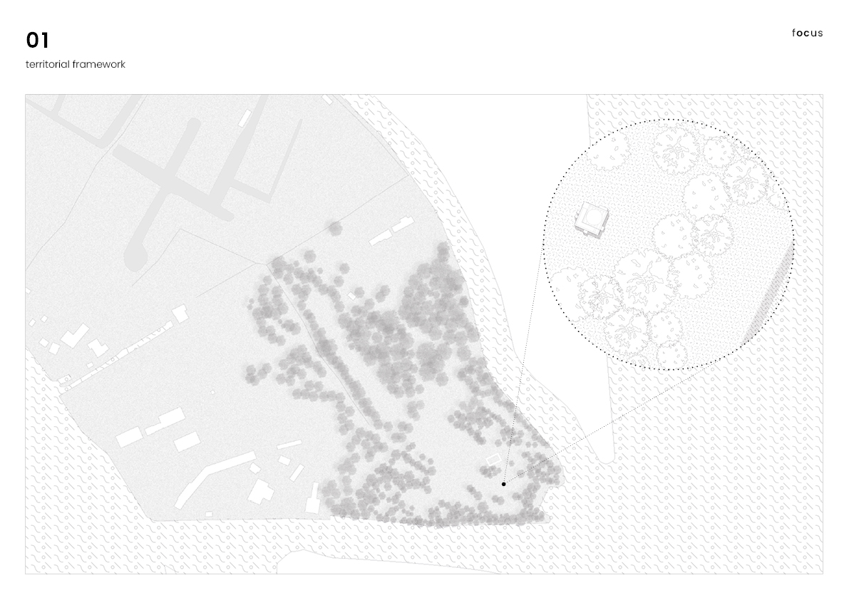 For the definition of the project, the inhabitants of Vignole have expressed the will to preserve the island spaces as places of strong natural concentration and physical decompression as opposed to the compression and chaotic reality of Venice. The goal is to draw a space that can strengthen the idea of a community by focusing on the place and people's needs instead of giving priority to considerations related to tourist attractions. For this reason Focus stands not only for a civic observatory in a natural context but also as an iconic manifesto for the creation of a place of concentration, meditation, observation and respect for time; a space that filters, through its levels, different types of action, contact and observation: a mental and physical ascesis. The civic observatory was primarily created for the community but also extends to those who need a place of escape from reality, looking for new points of view, contact with nature and concentration: strengthening the idea of community but also the concept of the territory promotion.