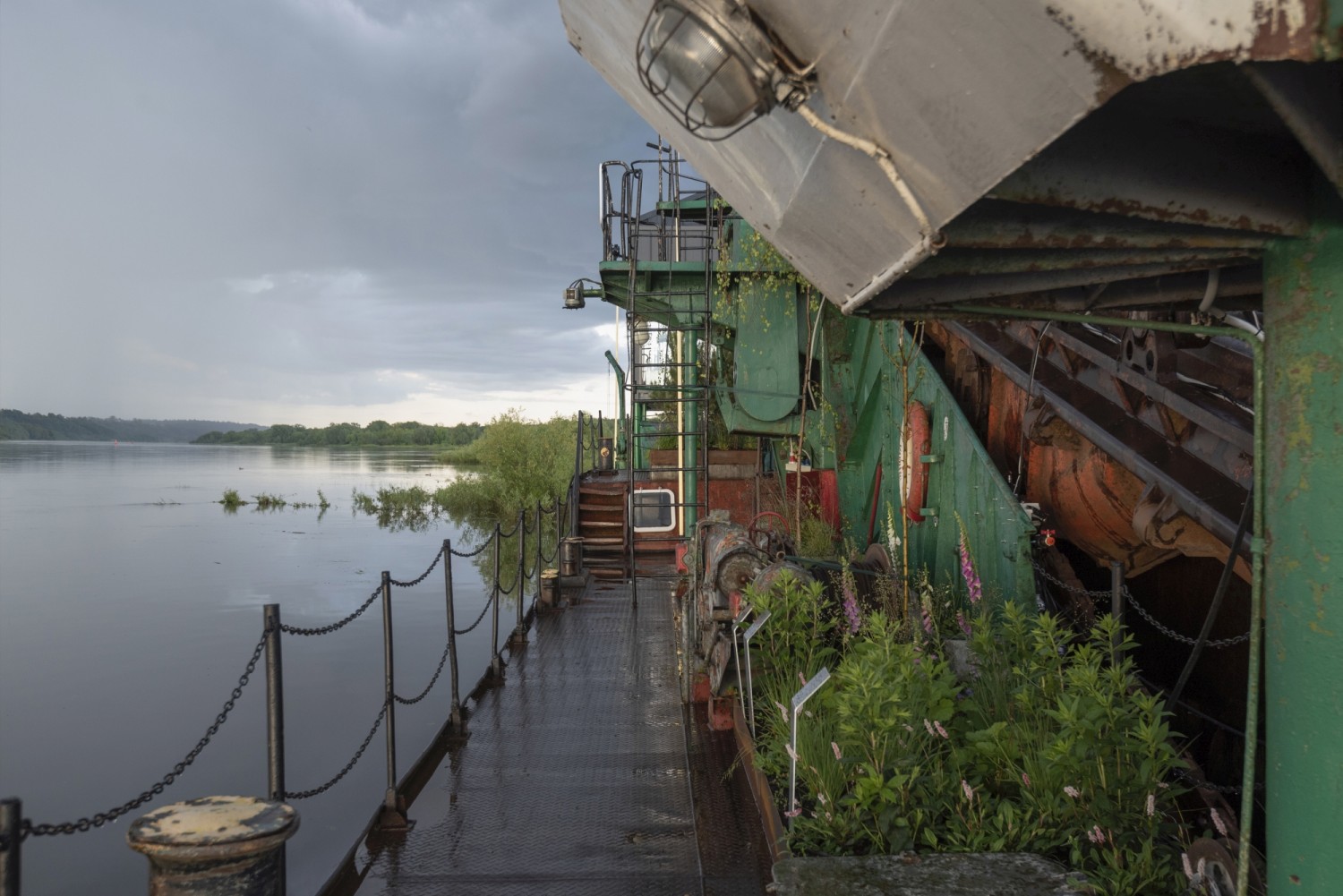 Continuing on the subject of sustainability, the ship has also become home to local pioneer plants that grow in open habitats and easily adapt to extreme growing conditions. A fiercely industrial object with nature sprawling on it, the site is fascinating both from inside, being onboard, and from outside, viewed from the riverbank or passing by in a ship.