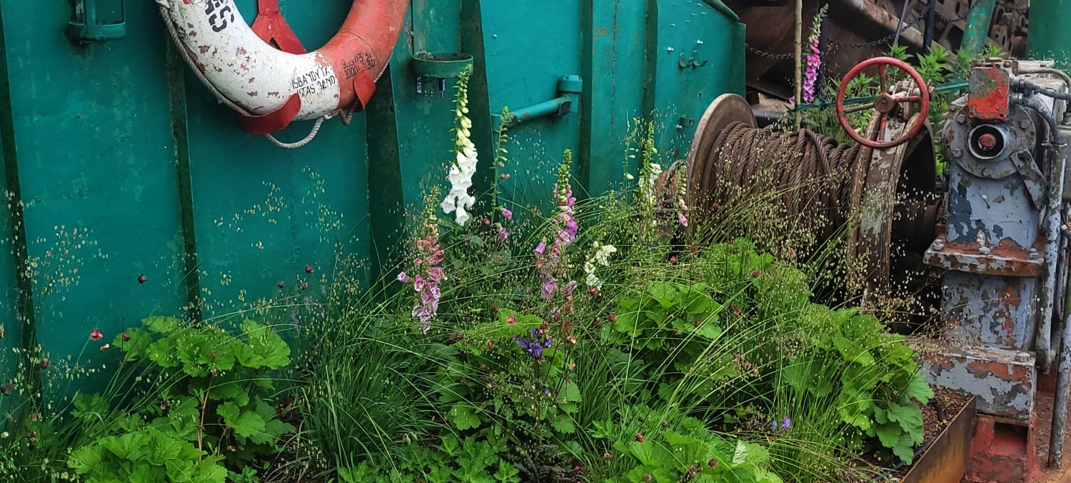 The main actor outside is nature and plants. Local pioneer plants that settle down first and are capable of living in highly unfavourable conditions became the main design element of the project and helped to integrate the ship into natural surroundings. Instead of just enjoying the decorativeness of plants, the project highlights their role in (re)creating an ecosystem and (re)ensuring biodiversity, reveals resilience of nature and actualises local plants, which has been highly welcomed by the public and sparked a paradigm shift towards deeper understanding and appreciation of the role that plants play in human environment.