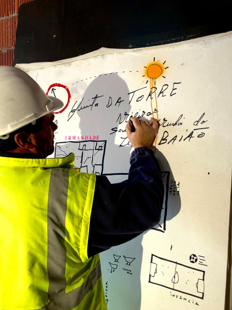 In the social sphere, we believe that every human being needs to express their ideas, their experiences and their feelings. They are the result of our daily experiences and habits, which lead to individual and collective development. In this coexistence with oneself and the other, there is a set of references that allow each member of a given society to move, express themselves, think, love, work, avoid fear and protect themselves from the unknown. Still, in the social sphere, it is worth mentioning that most of these workers are migrants from other countries. This migratory movement generates the fragmentation of identity. When leaving the land where they were born and where they grew up, the migrant loses known references, generating an experience of helplessness. This has been met through the relationship between the construction works and students from UMinho University, who visited the construction site and art atelier on a weekly basis to share life stories.