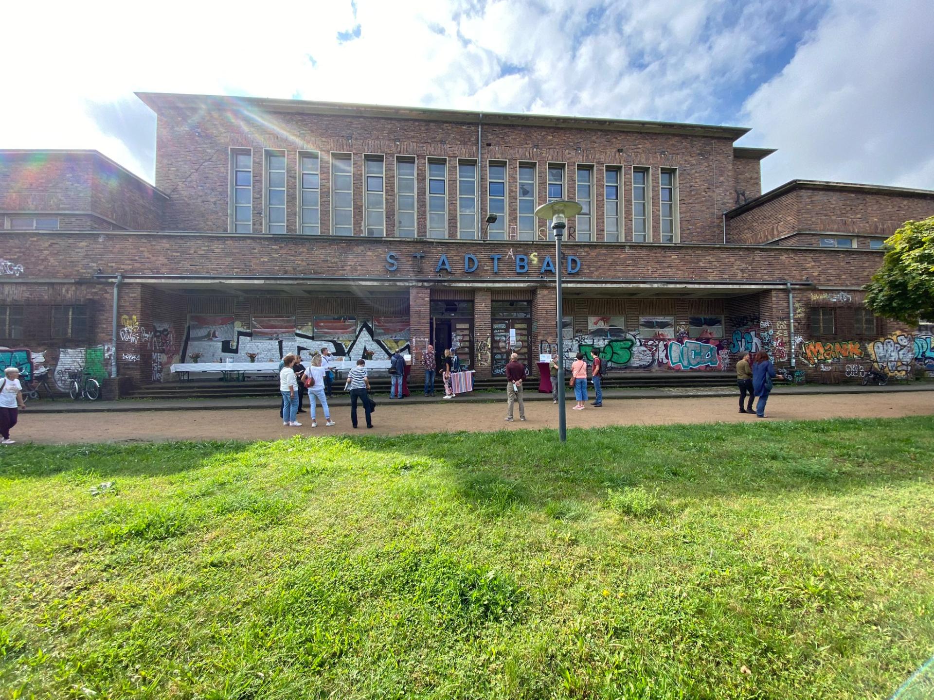 The conceptual approach of the STADTBAD Kunstforum Brandenburg and the virtual Stadtbad VIRTUAL BATHING has been interdisciplinary from the start. Our aim is to include and address the whole of society and not to focus solely and linearly on the cultural-artistic environment. Accordingly, we act with extremely heterogeneous interest groups, partners, public and private actors. Based on the concept, the interests of the STADTBAD Kunstforum Brandenburg and VIRTUAL BATHING are also broadly based. Interest groups from architecture, building culture, monument protection, urban and regional development, culture of remembrance, transformation management and of course from art and culture come together. As a special feature, the extensive involvement of society, which is interested in YOUR city pool, should be mentioned again. People with mental and physical disabilities are also involved. For us, this heterogeneous community of interests means a great deal of effort in terms of addressing and networking activities. Because every interest group first acts systemically with its usual parameters and communication methods. However, the aim is to develop a holistic language in which as many different groups as possible can be found. Language means linear communication, but also all projects and activities. We made sure that all projects were also interdisciplinary, for example letting the private entrepreneur work with an artist and a politician on topics related to the culture of remembrance. This creates completely new connecting nodes between parts of society that do not yet exist in this form. The radically heterogeneous and completely open approach to involving interest groups and partners is absolutely exemplary. This also applies to the complex, modular financing structures.