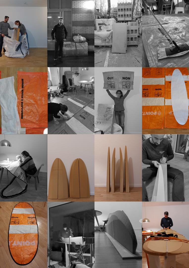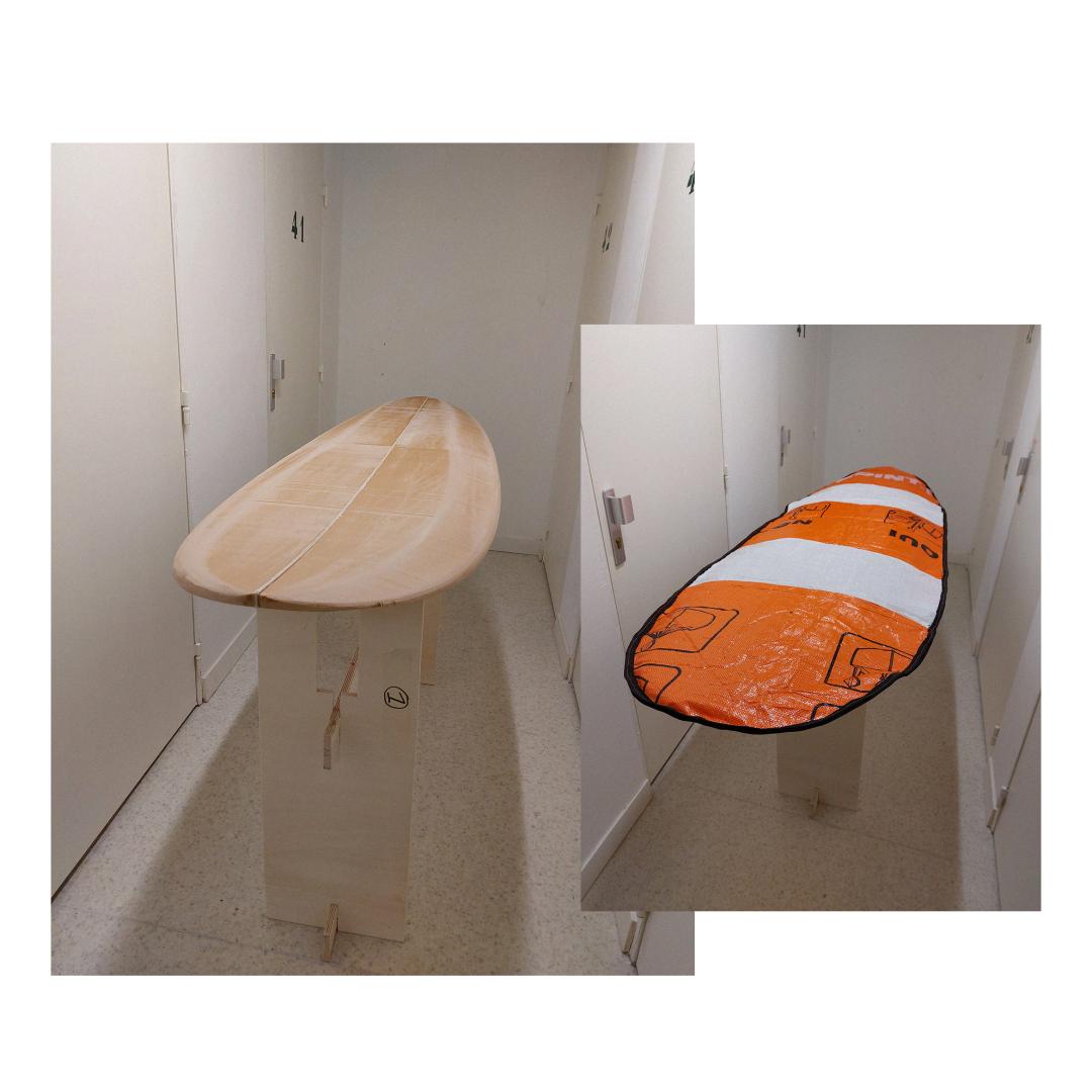 Concerned by the issue of waste in the construction sector and curious about possibilities of giving a second life to discarded materials, we made up a challenge in creating a surfboard and surf cover made out of reclaimed materials.