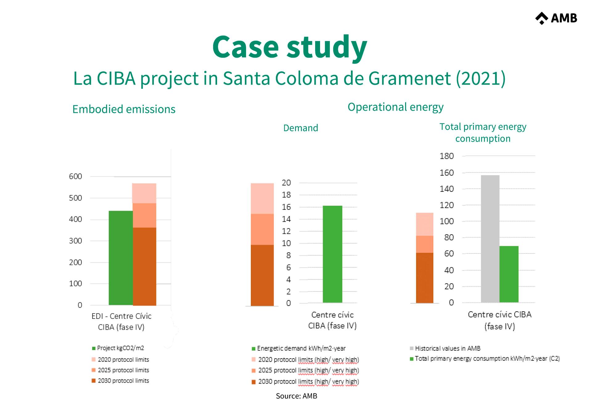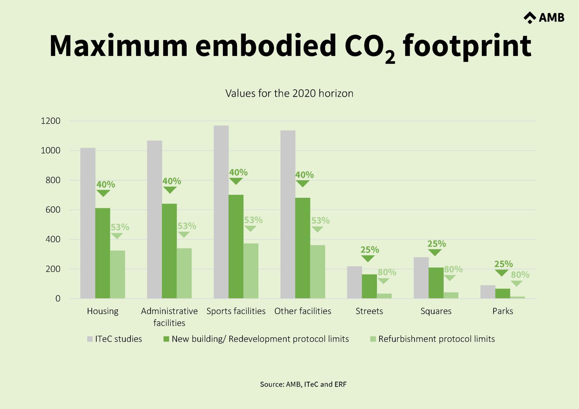For embodied emissions limits, different AMB works were evaluated in collaboration with ITeC, using GMA software. To establish percentage target reductions, reference studies were used.