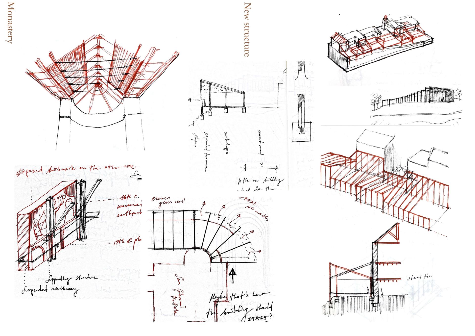 Adaptive reuse forms the basis of not just architectural strategy, but also environmental design strategy behind this project. Retrofitting the historic structure will give it a new lease of life and recover the monastery for the local community. Most probably, there had been times in its history when the building was depopulated, repaired, and populated again. The most sensible and sustainable way forward is to continue this cycle — and keep mending its fabric. The design can be realized with locally available natural materials, primarily timber, bricks and straw.