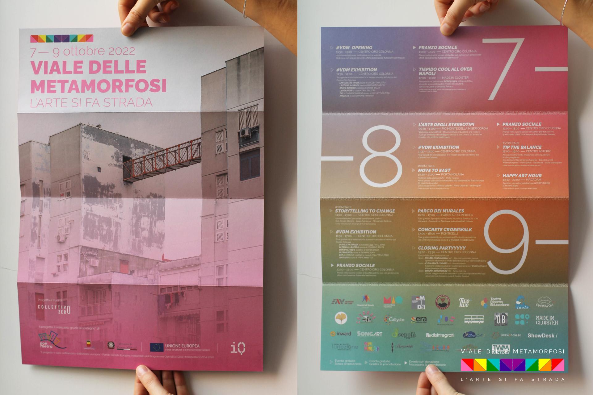 “Viale delle Metamorfosi-L’arte si fa strada" is a contemporary art festival, particularly public art, which took place in Naples (Italy) from 7th to 9th October 2022. The festival was the final part of a year-long project, during which the phenomena of urban, social, economic and cultural decay persisting in the Ponticelli district, located in the eastern suburbs of the city of Naples, were addressed.