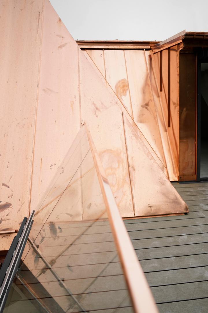 The provisional gable roof rebuilt in post-war 1950s as an empty shell on top of a historic building, makes way for K59 - a copper roof extension in the spirit of cradle-to-cradle.