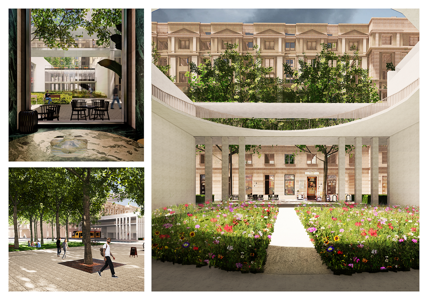 The architecture of buildings is also a manifesto of modernity, not understood as a rush for the development of technology, but as a union of the built environment and nature, and a search for a unique atmosphere of a place, an atmosphere captured in the form of solids. The premise is representative, sublime, like historic temples, but focused on celebrating nature inside the city and working on its improvement. The project, thanks to its mini-aesthetics, strong play of light and shade, and surprising viewing openings, gives a moment of relaxation and tranquility in the center of the city center. While Bauhaus and modernism was minimalistic to show greatness of the human being and industrialization, the project tries to bring back nature, tranquility and balance by minimalistic and ascetic architecture.
