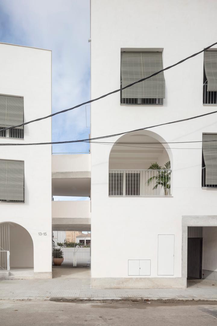 The project recovers an architecture with respect and continuity to its built environment, both in its image, its construction and in its materiality. White architecture, exterior porches and direct accesses from the street to the ground floor-houses are local traditional architecture elements of the old town, that this project incorporates to regain the sense of belonging.