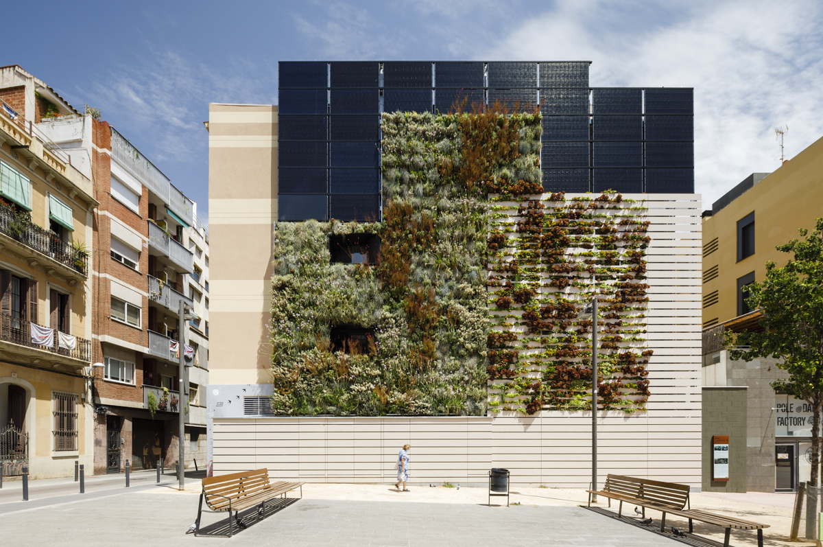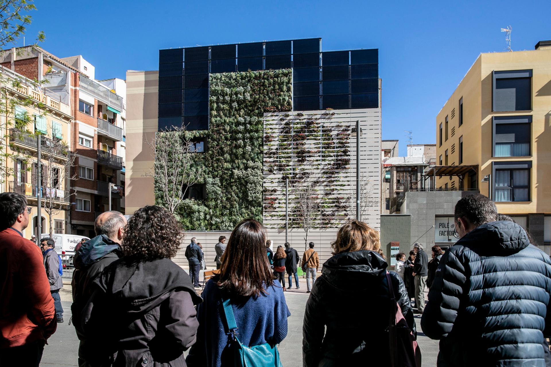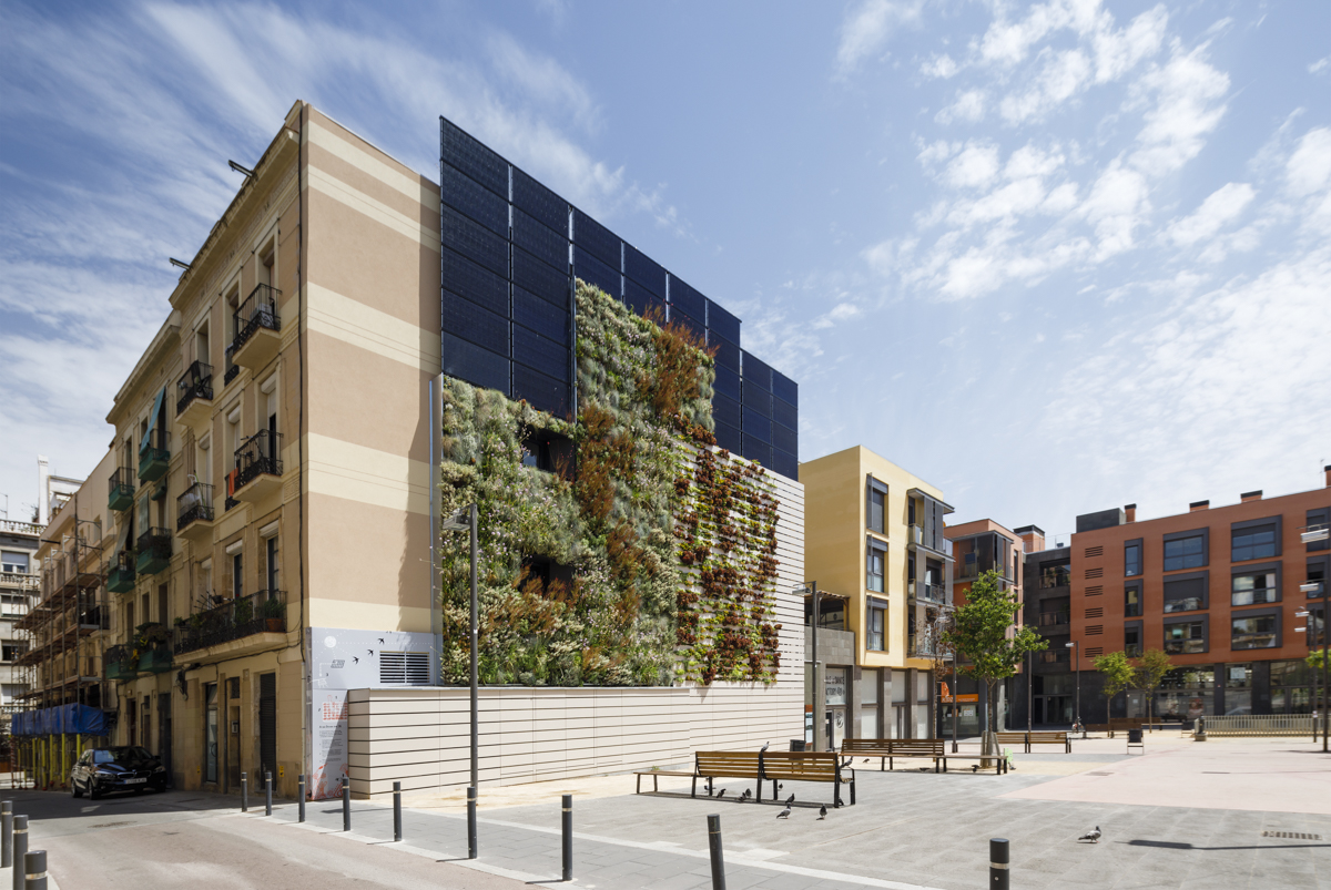 The project proposes the dignification of the wall in the square "Plaça de les Dones del 36", integrating it into the neighbourhood and improving its thermal conditions. This strengthened the sense of identity and historical memory with the incorporation of a work of art. The biodiversity of the surroundings was boosted too, with a vertical garden which was also used to install solar panelling to provide power. Housing here also gained in livability, with the opening of new windows.