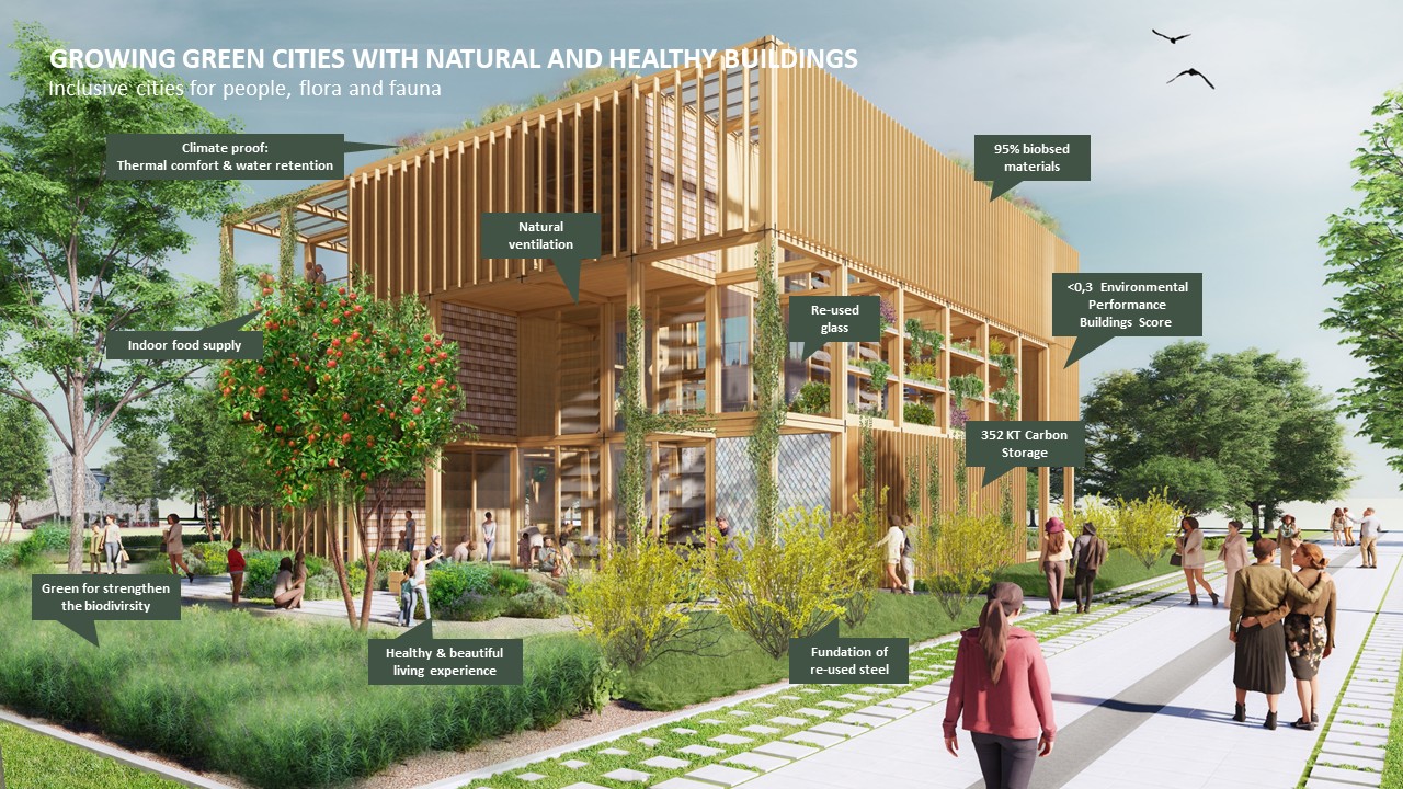 But cooperation has also been sought with the Dutch Ministry of the Interior, which is committed to stimulating biobased and circular construction by means of legislation and regulations. Moreover, research institute TNO is a permanent partner. They are investigating the possibilities of emission-free construction.