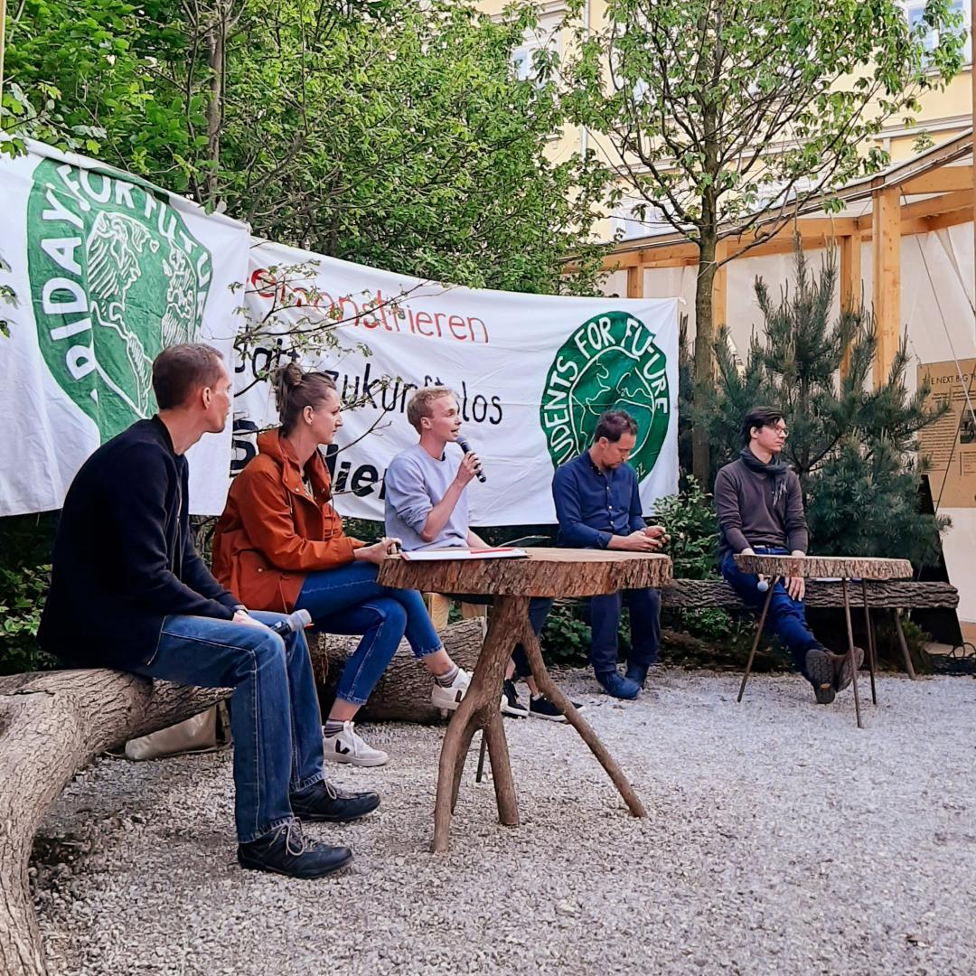 Climate change and cultural change are given the stage here, regardless of the social ideals and economic expectations of the participants. Much more than expected, the pavilion is a projection surface for the individual wishes and ideas of visitors and actors. The pavilion with the forest in the middle of the city shows simple and efficient possibilities for a new living environment. Discussions in this context, in the forest clearing under trees in the middle of the city, are surprisingly consensual and solution-oriented.