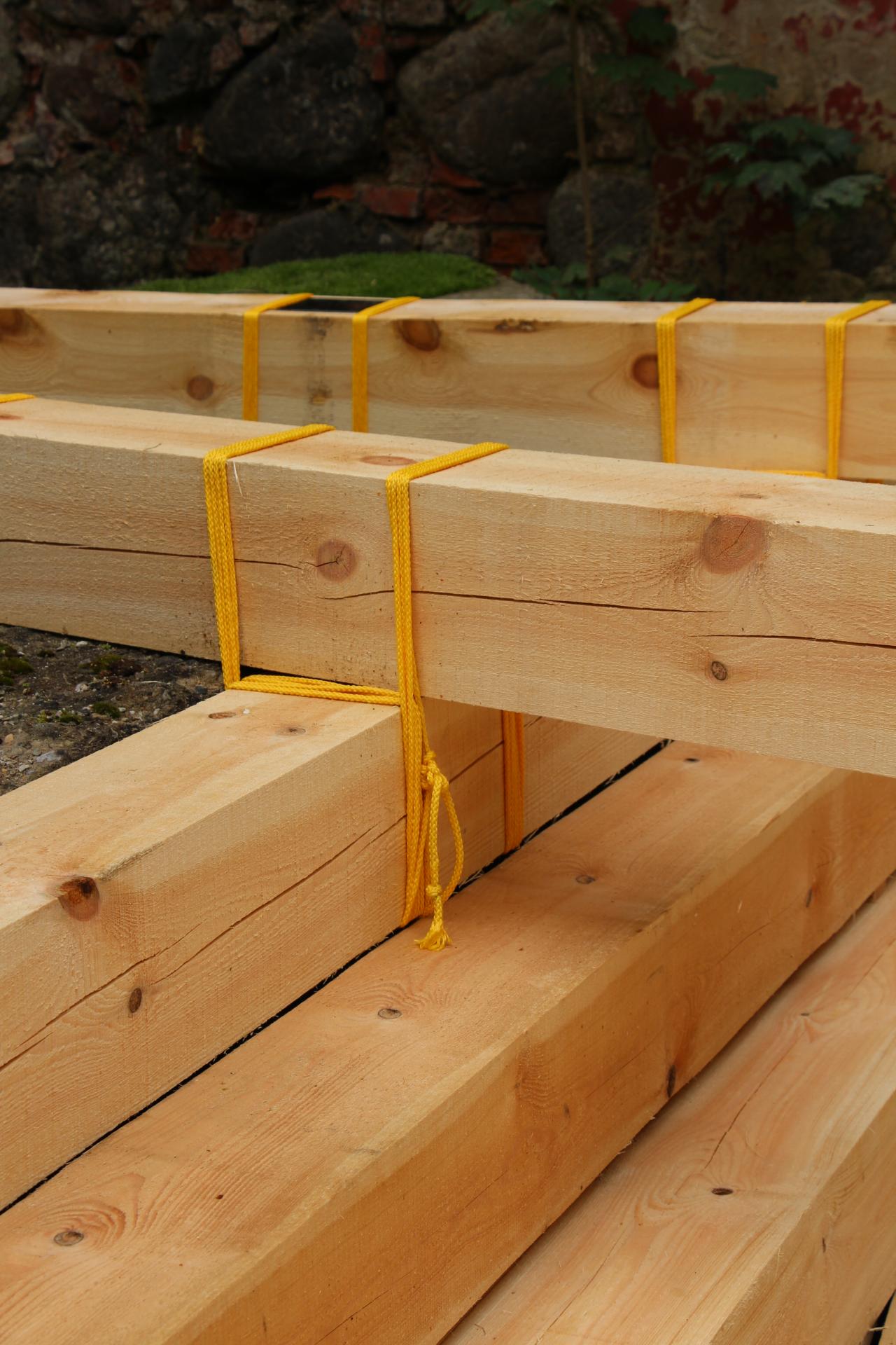 Secondly, the project directly tested key strategies of the circular economy. The entire installation was built in a design for disassembly manner where the construction could be disassembled again in its original components without any damage. Furthermore, the timber used in the project (beams and planks) were leased from a local timber shop, meaning that after the use in the installation, the material would be going back in the shop and sold as previously intended. Such an approach led to testing new ways of joining the elements and designing with full length material. As the ways of potential joinery were explored, an ancient Japanese method was found in which roof constructions of houses were rope-binded (allowing the structure to move in case of an earthquake), this method then was used with a different aim in the installation.