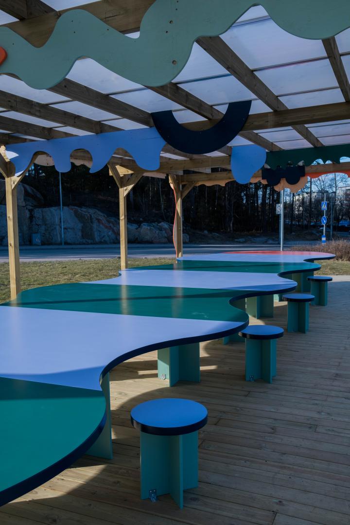 #10. Exploration of what a more urban meeting place can look like in a pavilion. A playful and temporary meeting place with a design informed and inspired by the work with Ten Tests in Gottsunda located in a central location.