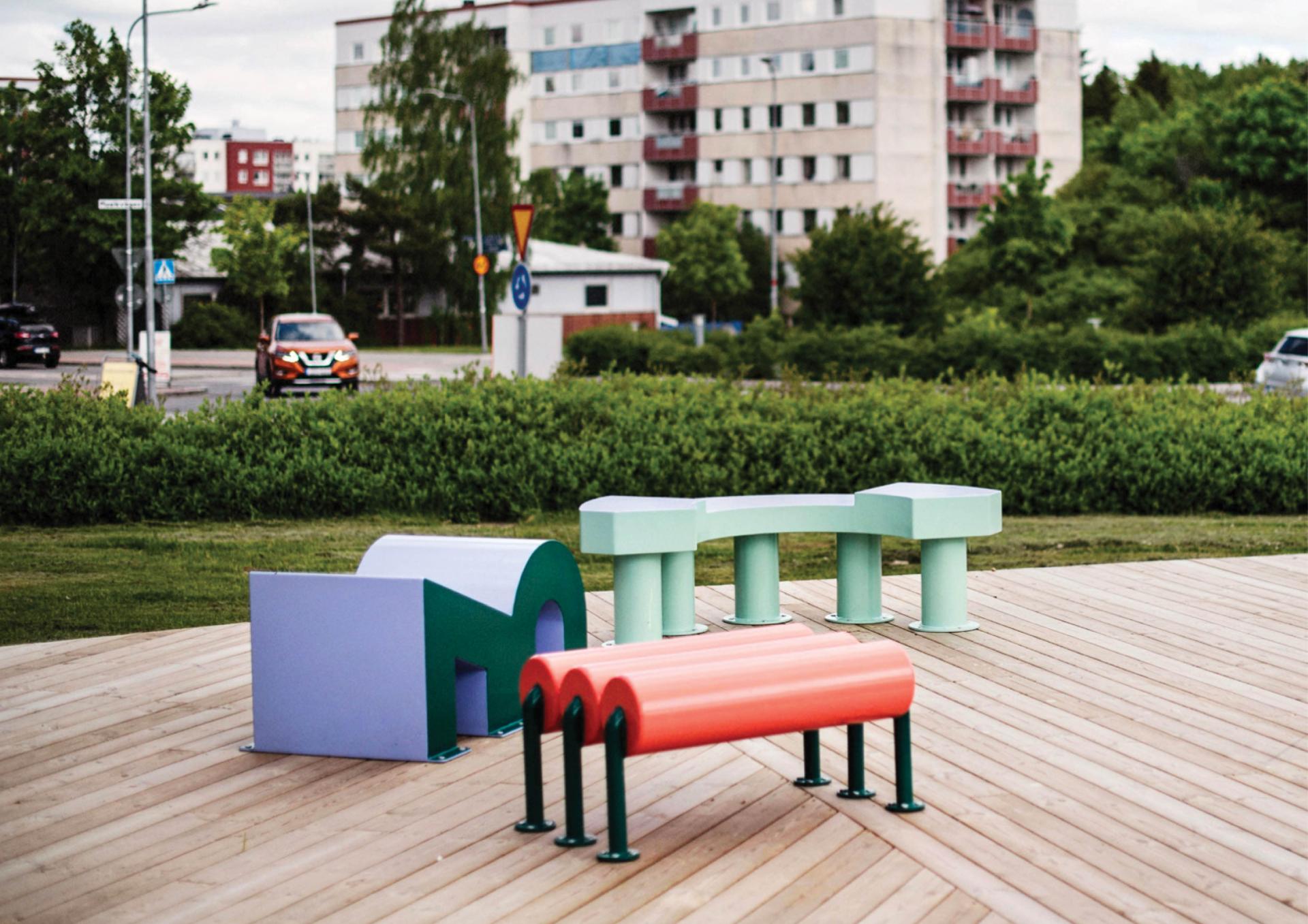 #7. Sit and play sculptures in colored concrete developed in collaboration with children. The purpose was to explore what seating furniture created by young people can look like and investigate how they can become a playful element in the urban environment that promotes other types of socializing than a classic bench.