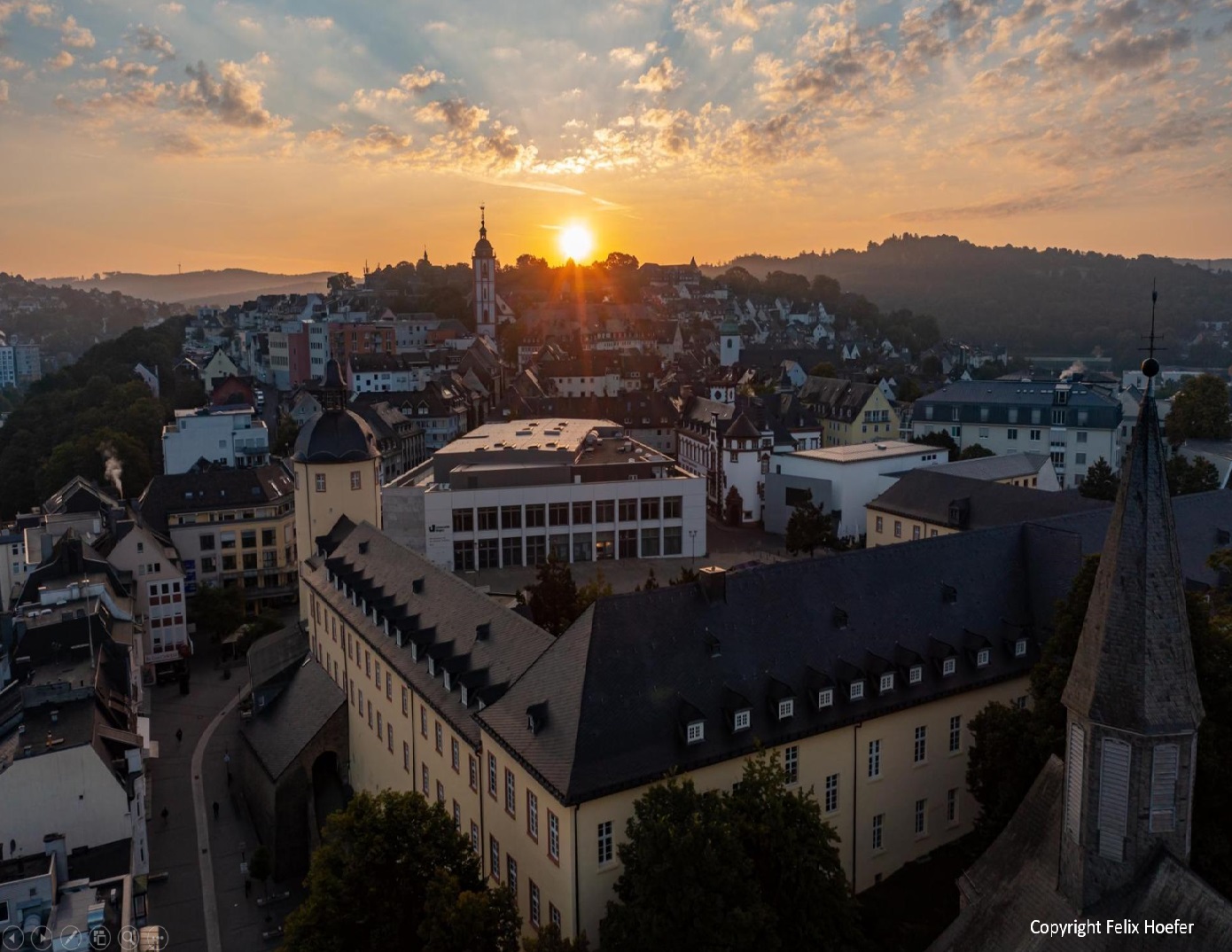 None of the renewed buildings available could offer the requirements for a modern lecture center. A 1970s-style department store is located vis-à-vis the castle. Owing to the development in retail, it faced the thread of closure repeatedly which would have been a severe threat for the development of the upper town. The idea emerged to convert the topmost floor of the building into a modern lecture center and was finally turned into reality. But first, solutions had to be developed: integrate a lecture theater with upward-sloped seating, design a new façade, and implement these in the running department store.