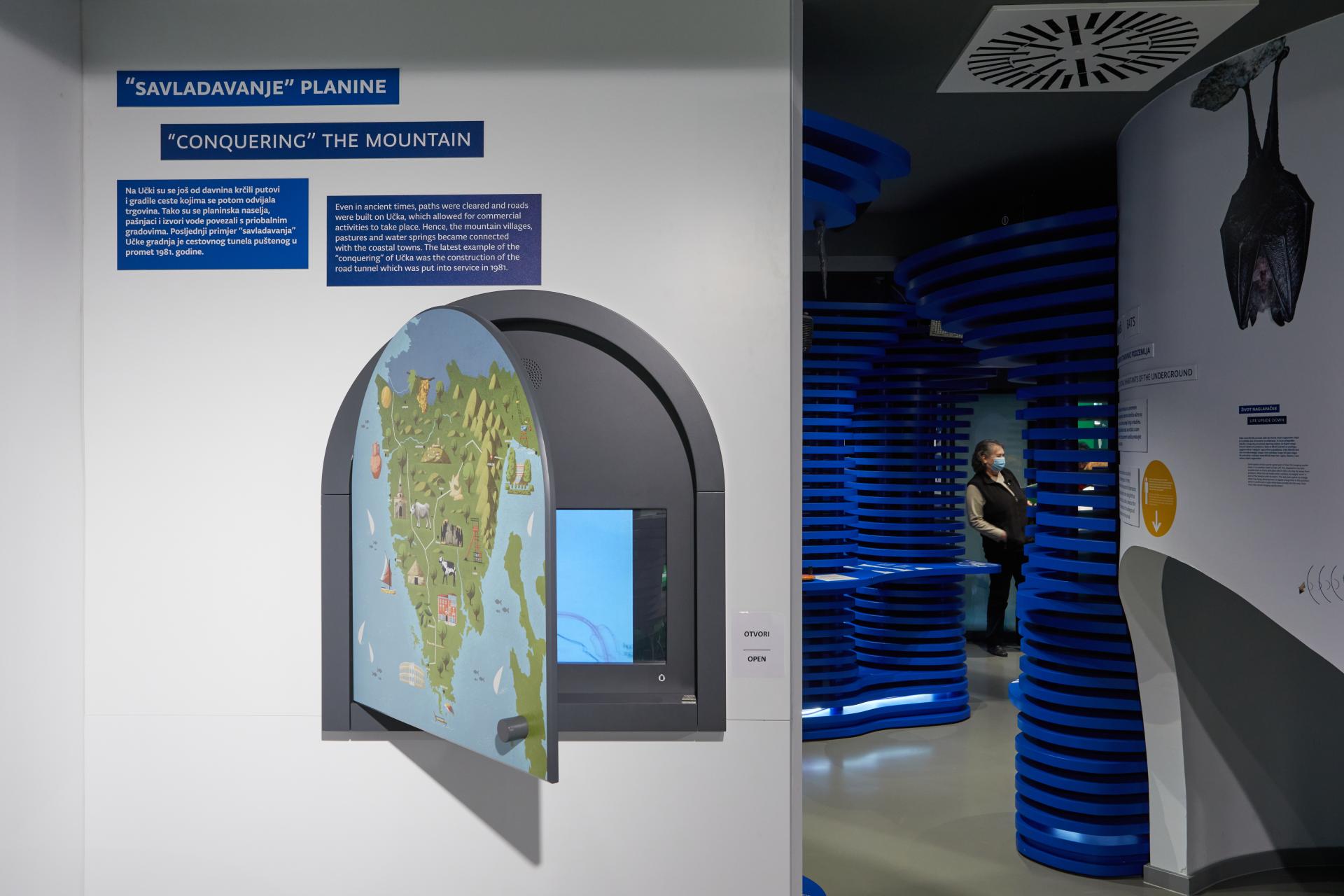 The permanent exhibition of the Poklon Visitor Centre, located in the heart of the Učka Nature Park in Croatia, overwhelms and enchants visitors. Interpretation of a vast locality rich with natural and cultural values educates and raises awareness for sustainability. It introduces the deep heritage tale, celebrating the unshakable link between a man and a mountain while connecting the visitor to the inspiring lessons from the past directly offered by the local community.