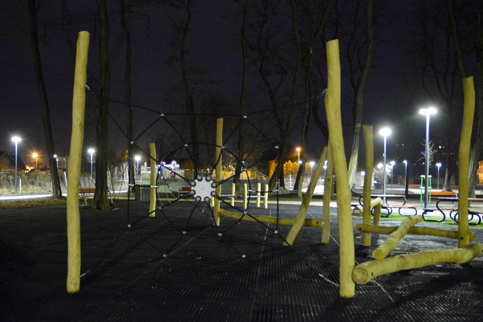 The original Park was established on the area leased by the National Forestry service. Therefore the essence of the project was to protect the existing greenery and increase biodiversity with the use of local species. A new layout of paths was proposed and paving was changed to mineral surface to protect trees. The new elements of development have been standardized and simplified in form so that they do not compete with the surrounding greenery. Street furniture and land development elements are made of natural materials (stone and timber). Part of the soil from the excavations was used on site as a hill for the slides to reduce CO2 emissions related to the removal of soil from the excavations. Any objects that had been kept in good condition were moved to a new location in the city. Due to the poor condition of some trees, a few them had to be removed, with their trunks used in the landscape. All surfaces have been designed as permeable or semi-permeable to ensure maximum degree of water retention. Park is accessible by foot from the nearby housing estates via various forest paths. In order to increase accessibility, the necessary pedestrian crossings have been designed, allowing faster access. At the edges of the Park there is a clusters of bicycle stands. Bike connections are also planned nearby, as well as an internal system of cycle paths in the Park. The project is fully adapted to people with special needs. The paths in the park were designed without any faults and thresholds, and where possible, ramps were used. Playground surfaces and some of the toys were adapted for use by people with disabilities. In addition to the natural color of the wood, color accents were used to facilitate the use of devices by children with visual impairments. There are also parking spaces for the disabled in the nearby car park, from which a safe route leads to individual functional zones. Within the Park, every 50 m there is a place to rest, equipped with benches with armrests.