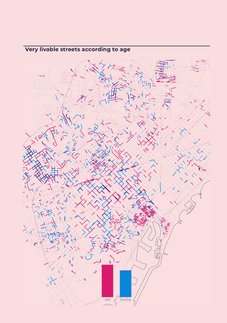 As a final result of the Mercè experiment, we obtain a map of the livability of the city that shows us, according to five typologies, which are the most and least livable streets. This allows us to know which streets need more attention and to know which are the parameters that we must take into account when rehabilitating or building new urban space.