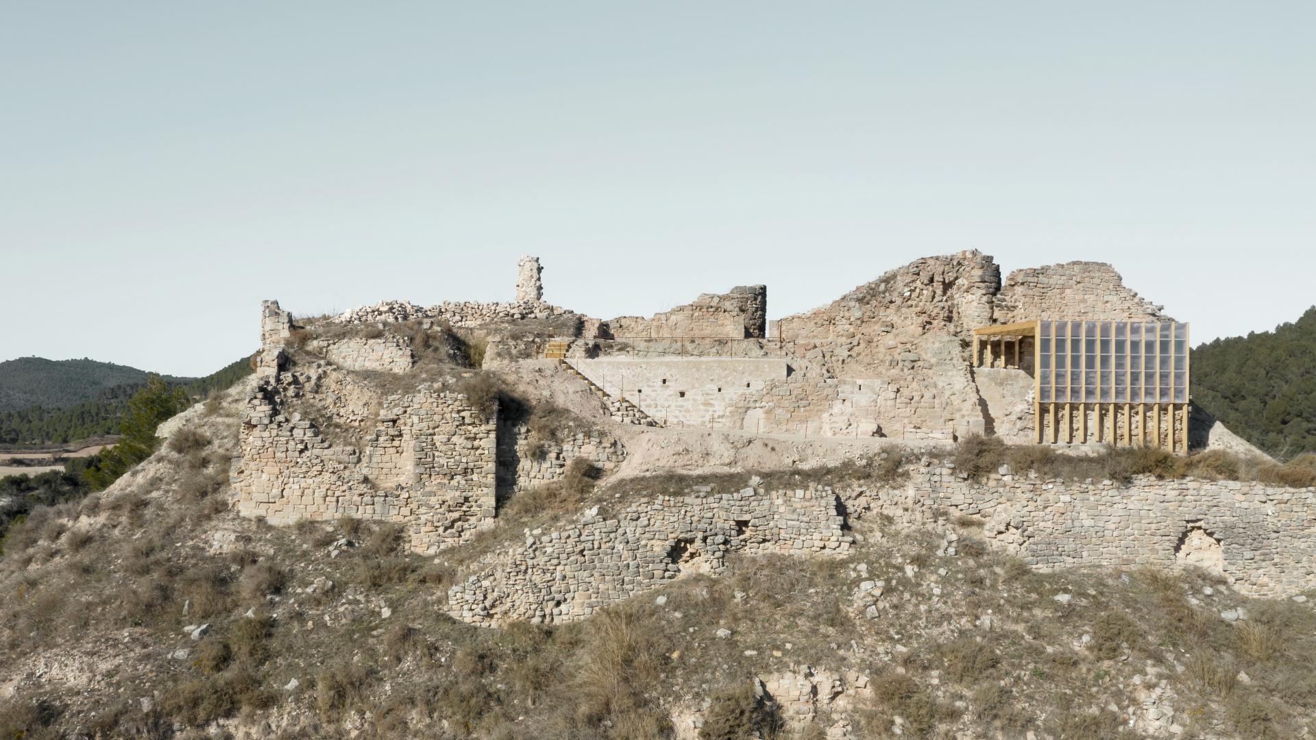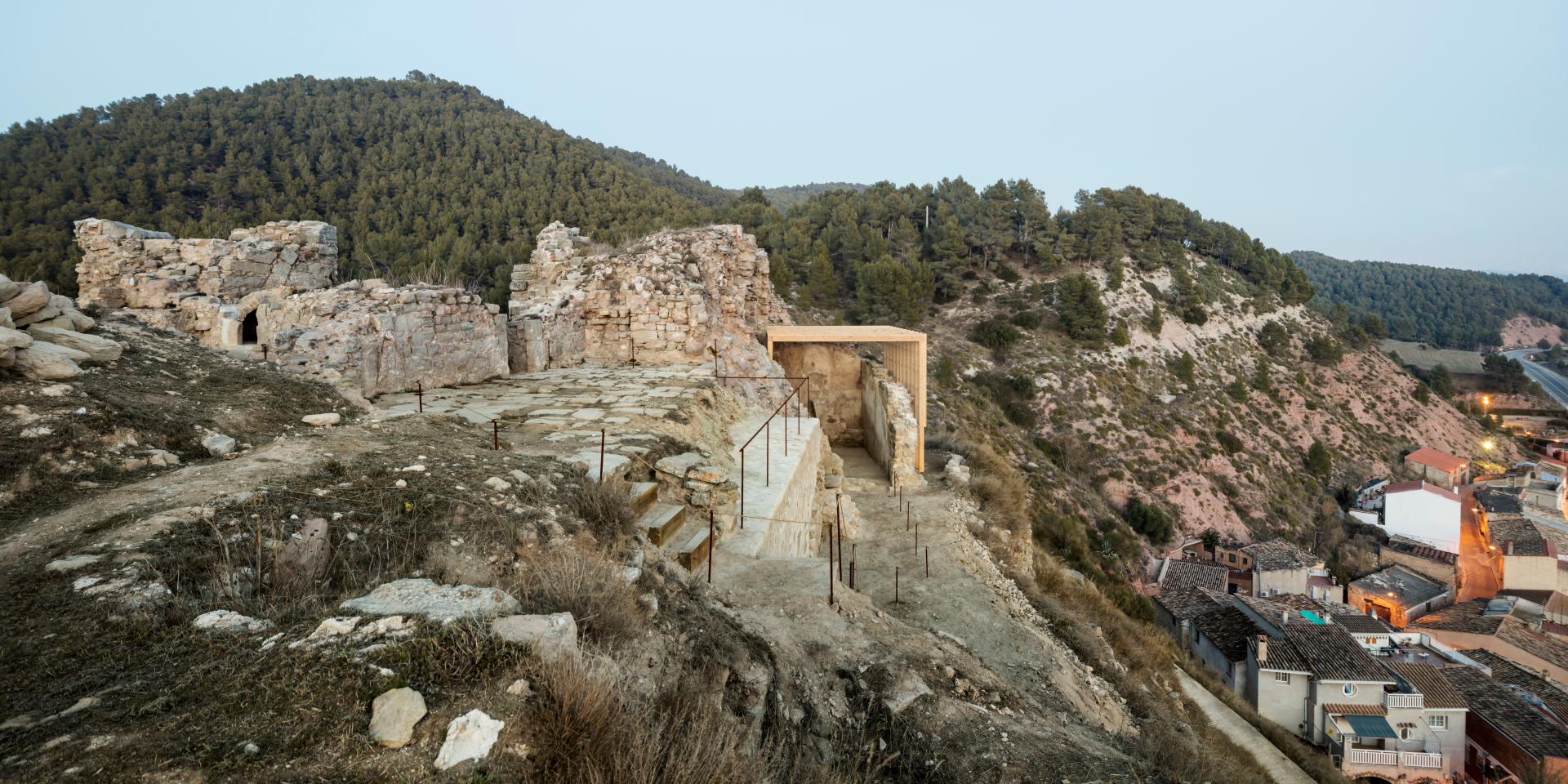During the archaeological intervention in the completely buried remains of the Castle of Jorba the chapel enclosure and some very well-preserved sgraffito and bevels are discovered. The project proposes covering the chapel to prevent deterioration, allow future archaeological work & visiting. A landscape itinerary is generated recovering the original gateway and the upper terrace, a vantage point with views of the traces of the old thoroughfare that connected Barcelona with Lleida.