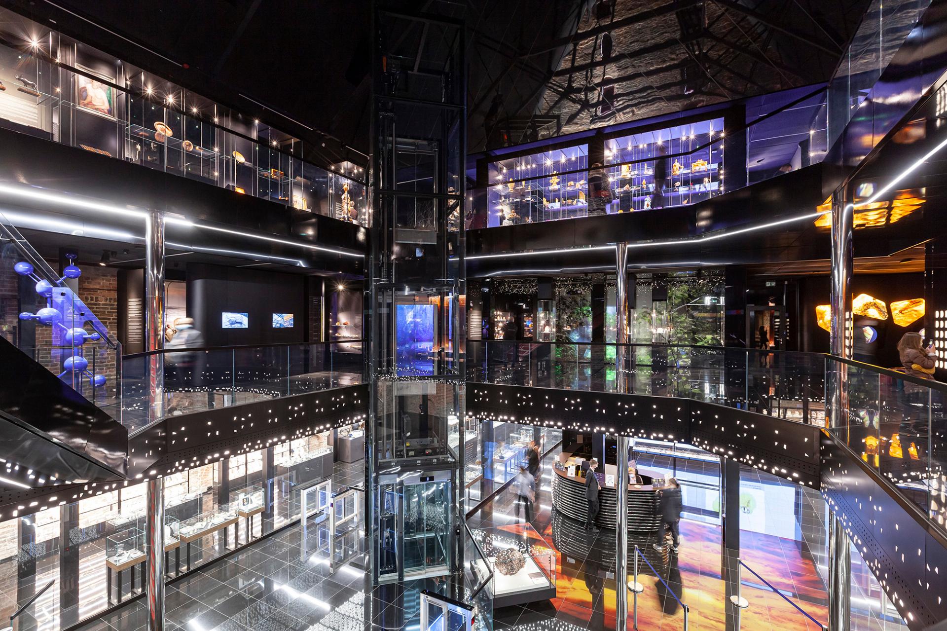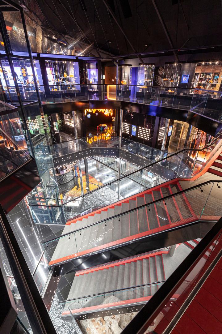 The design and realization of the Amber Museum respect both the abundant history and uniqueness of the medieval post-industrial facility, as well as the beauty of amber. We decided that both elements of this puzzle should not compete with each other, so the architectural and interior design project focuses on displaying the most attractive elements of the monument: brick walls and archaeological excavations, and at the same time creates an optimal atmosphere for the presentation of amber exhibits. The interior uses a narrow range of finishing materials with a noble, durable and natural character - granite, glass, and stainless steel. An advanced lighting system for exhibition spaces has also been introduced, which enables multiple arrangements of the public space fashion shows, lectures, cultural events, but also for the evacuation of visitors or periodic technical inspections. In the project, we tried to create the central space of the museum as all-purpose, to show its beauty, size and versatility. The naturally dark interior (the mill has few windows, but a huge gable roof) is complemented by galleries, a new bridge, stairs, elevators, open spaces, lighting and black finishes, which emphasize the dignity of the space. The entire building was to become a beautiful casket containing valuable collections. Hence, the exterior of the building has been kept almost without architectural interventions, focusing on the potential and future tasks of the historic building’s interior.