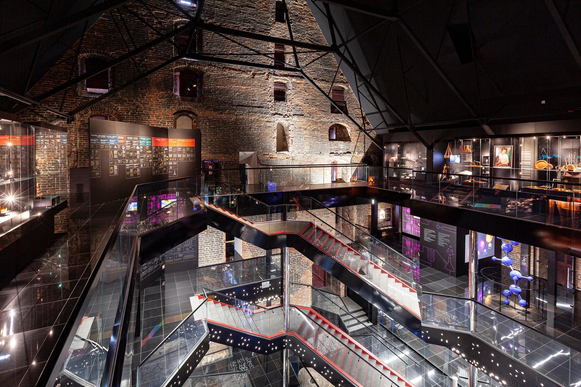 In 2015, at the time of taking over the historic building of Great Mill for the new purpose the object contained the former commercial function’s infrastructure – a steel and reinforced concrete structure of floors introduced in the 1990s. The initial wish of investor was the total removal of the existing interior arrangement and the new structure’s introduction. We found that such operation would entail many difficulties, e.g. violation of the historical foundations of Great Mill and damage to its historic structure. Pre-design phase experts’ opinions and evaluations of the existing structure’s condition confirmed that it can be used, with local reinforcements, for the needs of newly introduced institution. This only strengthened our idea of reusing the existing investment in the Great Mill to optimize the energy spent on the construction, to use and process the existing in the facility material resources. We used again e.g. recovered steel structure elements, glass from former partition-walls and balustrades, polished steel and stone cladding. Financial limitations also influenced taking up this path of designing and implementing the project, which have become our ally in persuading all to deploy solutions in the spirit of architectural recycling. The research showed the high insulation capacity of the historic brick walls of the mill due to their thickness of 1.6-2.2m. Not original roof structure was replaced due to its poor technical condition, to improve the energy efficiency of the building. Inside there were applied energy-saving devices, media consumption optimization systems as well as construction and finishing materials, mostly natural and local, with high durability, which will not require replacement for years of use (to reduce the operational carbon footprint). In the future-while mill is both sides surrounded by historic water canal - it is planned to recreate 18 mill wheels as modern water turbines - a source of renewable energy used by the museum.