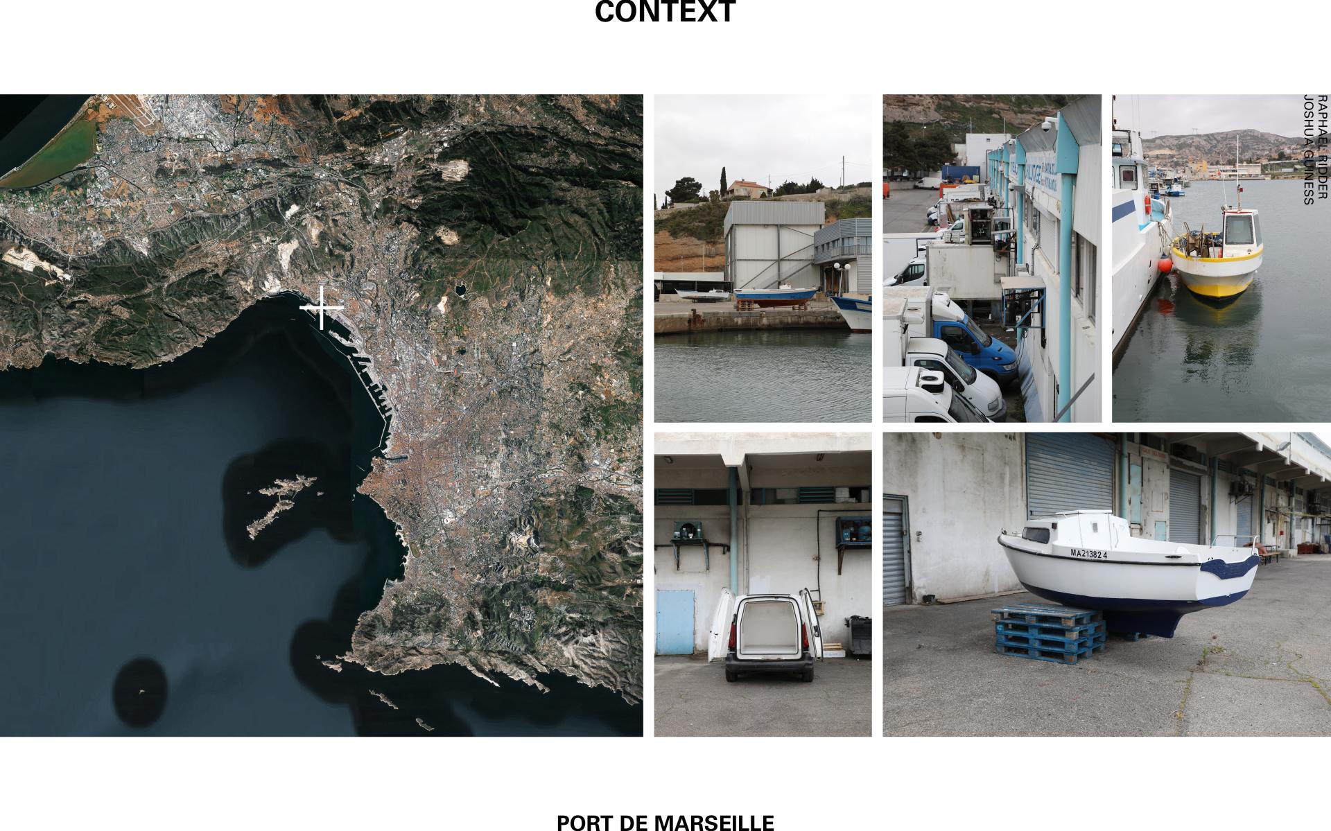 The former fish port of Saumaty embodies the shift in significance of water for the entire region of Marseille due to a gradual de-industrialization of the coastline and overfishing of the sea. Like in many places along the Mediterranean coast in Europe, the sense of belonging attached to the waterfront has been lost along with the port’s decline in productivity. As a place characterized by this condition of limbo in between past and future, the port of Saumaty poses the question of how to re-activate a former place of exchange, mobility, and liveliness by means of discovering new potential uses for its specific conditions and promoting novel ways of understanding water as its common resource. Separated from its context by highways and cliffs, the entire site circles around a man-made basin of salt water that provides access to the sea. The proposed Marine Research Center links this defunct industrial harbour to the globalized territory of the sea as a common resource. In combining different fields of experimental research and the gathering of data on the sea, the project explores the possibility of re-defining the relationship between human activity and the water in a place where this direct industrial purpose has been lost. The aim is to address this question through a landmark that transcends its local context and acts as a recognizable symbol of the wider environmental issues connected to the sea. Re-negotiating the contemporary relevance of water as a natural resource becomes a vehicle for re-gaining a sense of belonging to the industrialized Mediterranean coastline.