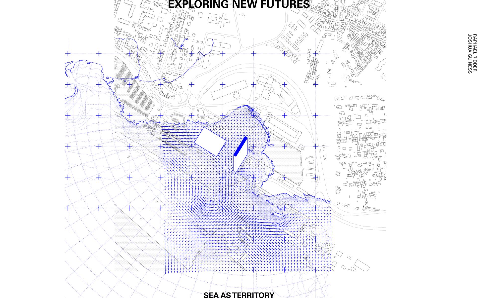 The post-industrial site of the former fishing port is re-invented as an infrastructural base for technology that contributes to the production of knowledge about the sea in combination with a center for research on sustainable uses of water. The marine research center acts as a laboratory for living with salt water. Fresh sea water is pumped into a large tank on the roof and then circulates from top to bottom, passing through each of the different climatic layers of the building. According to light, temperature, and humidity, different conditions of climate and water generate specific uses. Research on aeroponics, eutrophication, coastal ecologies, and the purification of water explores future scenarios of human activity with water as a common resource. This includes a launching site for bionic networks of intelligent underwater vehicles that are integrated into of the complex ecosystem of the sea. Key fields of research are for instance: seabed mapping, water quality, current velocities, weather monitoring. overlaying and relating these forms of data allows to gain a deeper understanding of the sea as a dynamic medium. Fostering this knowledge may contribute to projecting future forms of engaging with the water and re-defining the relationship between the city of Marseille and its coastline.
