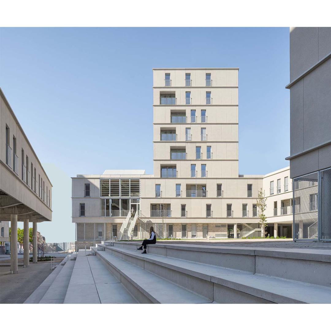 This collective housing building is a social housing building. This building design strategy which combines the bioclimatic (sustainability), the social and the aesthetics delivering a passive interior atmosphere.