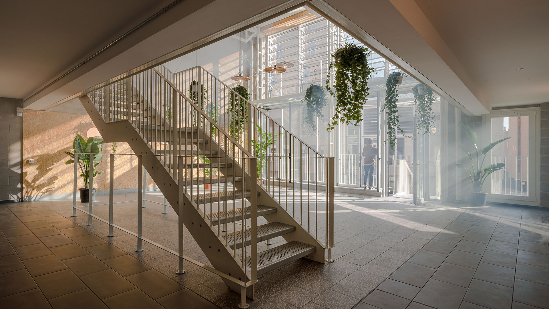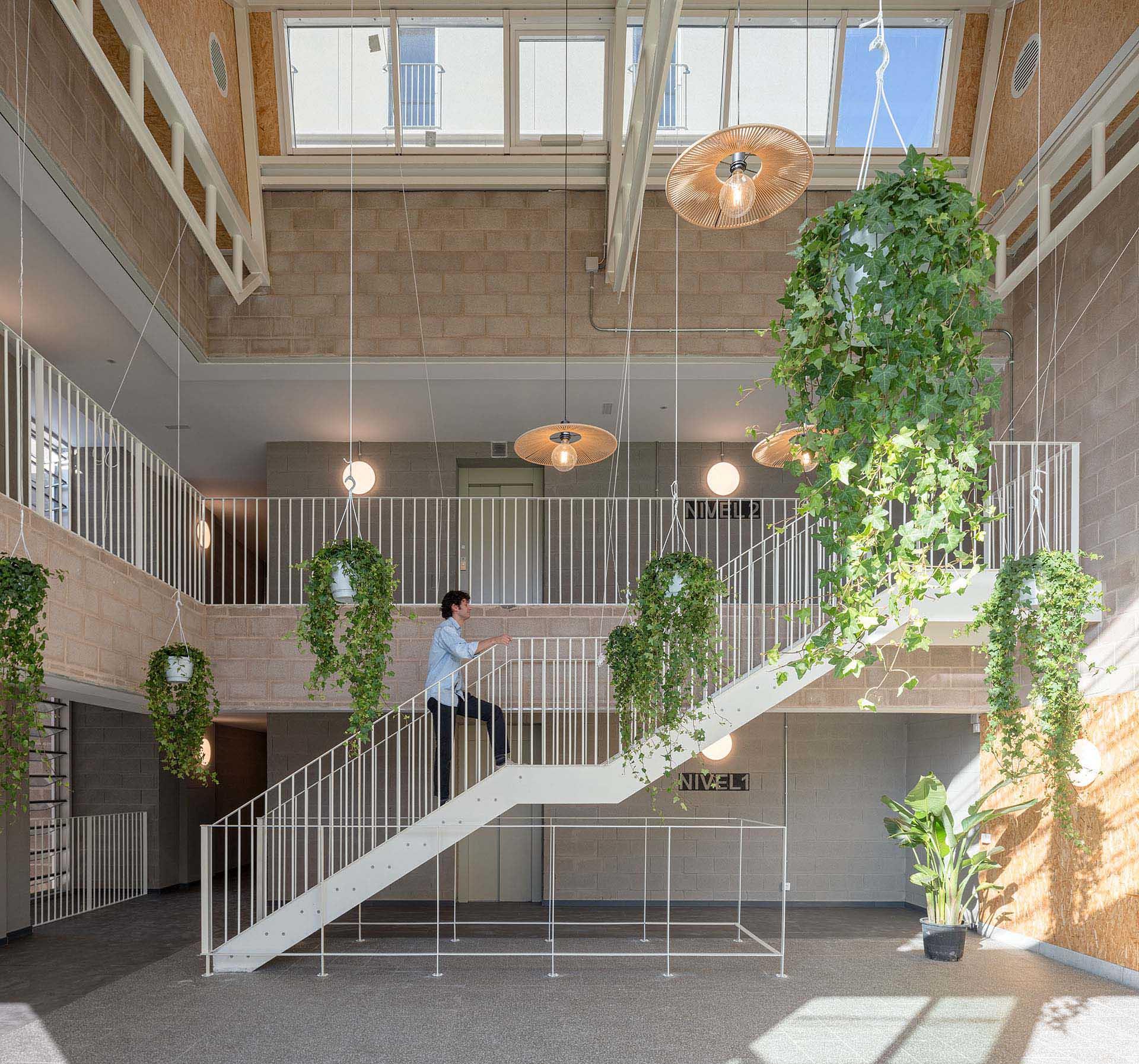 In addition, this network with direct connection to the outdoor squares forms a set of public spaces that are passively acclimatized with the participation of the residents, being through the collaboration of its users —in the maintenance of the plants, in the opening and closing of vents, etc.—how to achieve a healthy and comfortable atmosphere that encourages people to socialize, enhancing the sense of community.