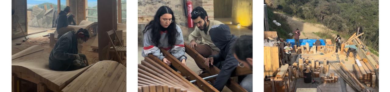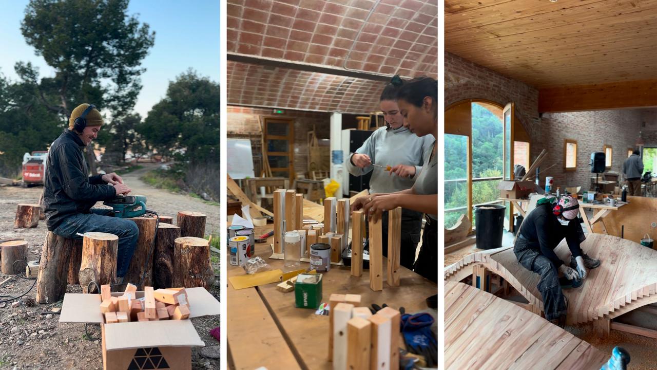 Following these co-design outcomes, the IAAC team then fabricated wooden modules for each intervention at Valldaura Labs in Barcelona’s Collserola Natural Park, using a combination of hand tools and digital tools to quickly achieve strong and sophisticated yet economical forms while minimizing waste.