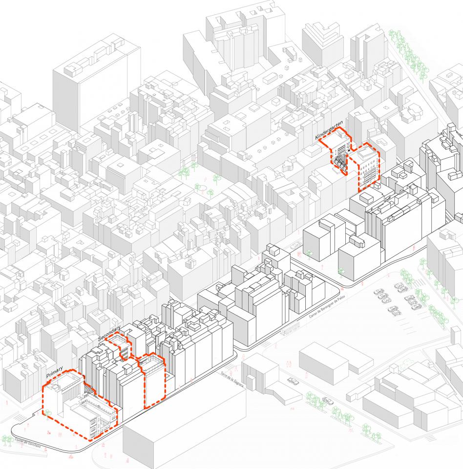 Ultimately three terraces - kindergarten, primary, and secondary - were reimagined to address the unique needs of each age group.