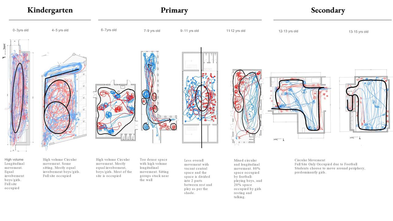 Architectural design skills were then employed to conceive of spatial responses fit for each age group which promote fairer use for all genders, and that are both aesthetically beautiful, durable, and flexible enough to accommodate diverse interpretations of use or arrangement.