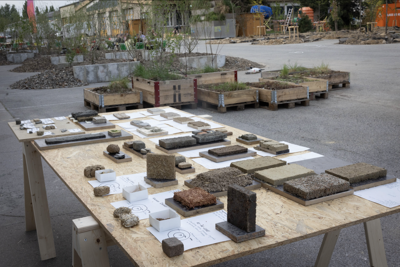 For 100 days, students from TU Wien (Research Unit Building Theory and Design, BML Endowed Professorship for Timber Construction and Design in Urban Space) experimented with urban waste materials from agriculture, the food industry, cultural sector and the construction industry and developed prototypical recipes for building materials in order to jointly strive for a rethinking of resource use.