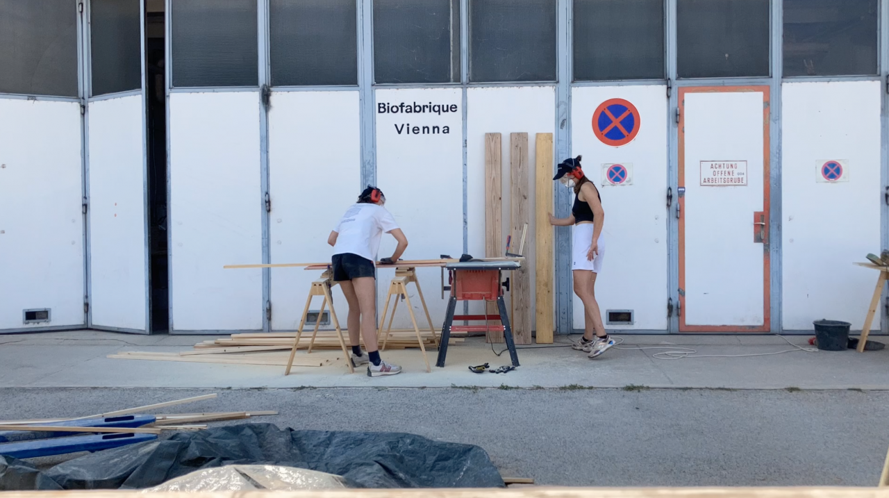 Direct beneficiary groups include students, who gained a deeper understanding of resource management and sustainable material use and industry partners, who explored alternative approaches to construction and circular material flows. Furthermore local craftspeople, who were passively involved in the setup of the Biofabrique Kantine, discovered and experimented with innovative construction techniques. Indirectly, the project reached a much broader audience of civil society, fostering awareness of waste-conscious design principles through exhibitions, guided tours, and discussions at platforms like the Klima Biennale and Vienna Design Week. By bridging research, industry, and public engagement, the Biofabrique Kantine has positioned itself as a catalyst for a more sustainable, circular construction industry.