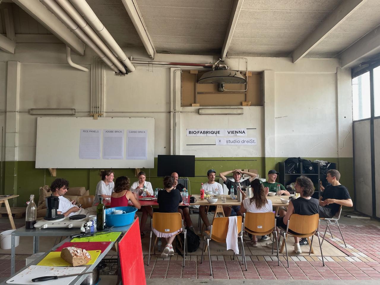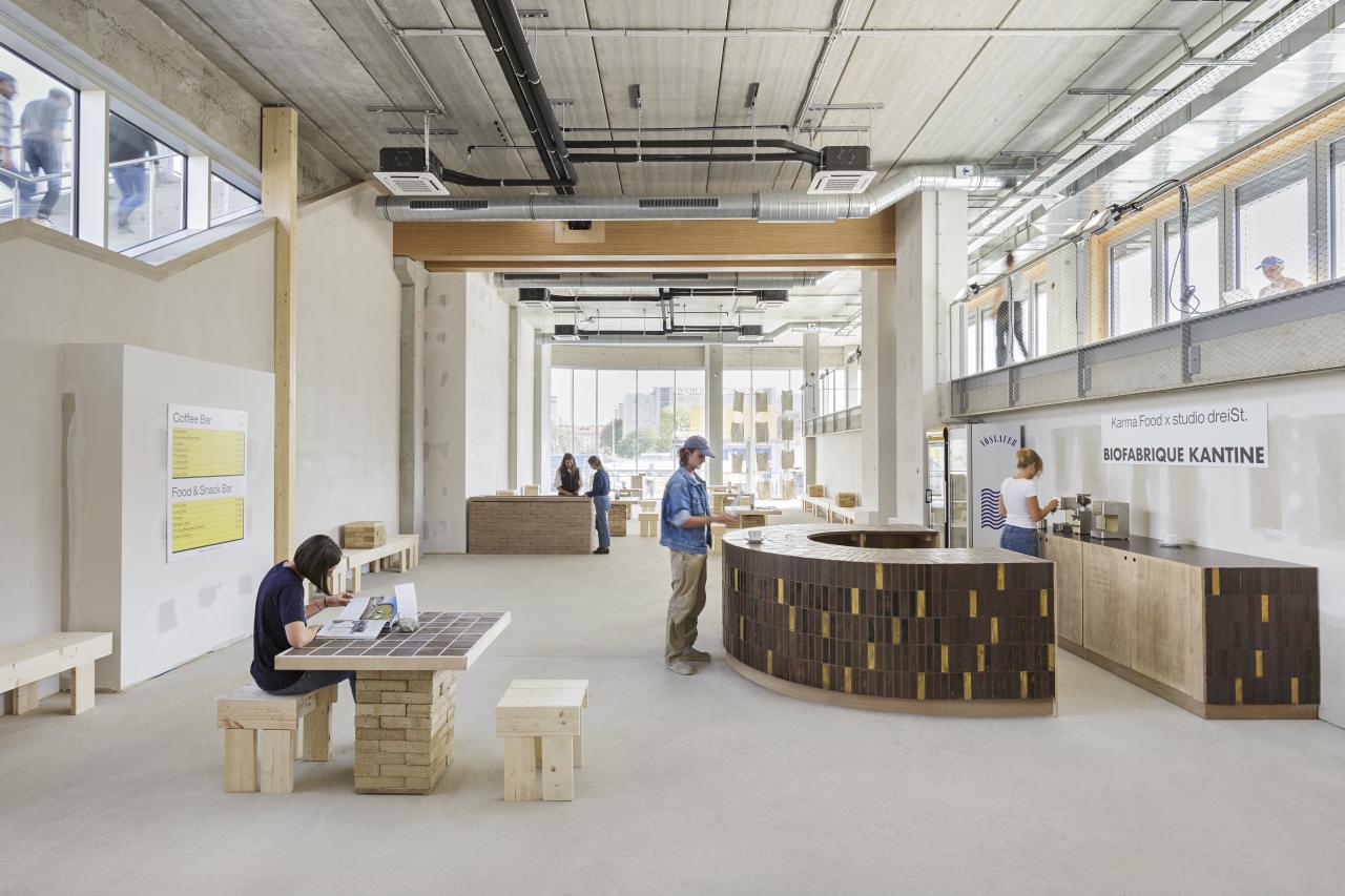 The Biofabrique Kantine remained at its location after the exhibition and is now utilized by Austrian Real Estate as part of the activation of "Village im Dritten," one of Vienna’s largest ongoing housing developments. The space functions now as the Biofabrique showroom, a space for material innovation, while also hosting workshops, co-working sessions, events, and more, fostering engagement with sustainable construction practices.
