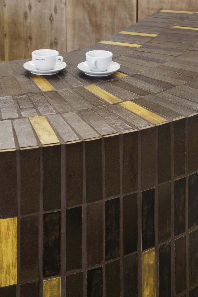 This approach challenges the idea that beauty comes from perfection. Here, the materials themselves guide the design, shaping a space that feels organic, warm, and deeply connected to its surroundings. Walking into the Kantine, you don’t just see the space, you experience it. You can run your fingers across the uneven surfaces of the handmade tiles and glazes, feel the coolness of raw clay, and even catch the scent of natural materials like mycelium in the air. The furniture and layout invite people to interact with the space on multiple levels, encouraging them to slow down, notice the details, and engage with their environment in a more meaningful way.