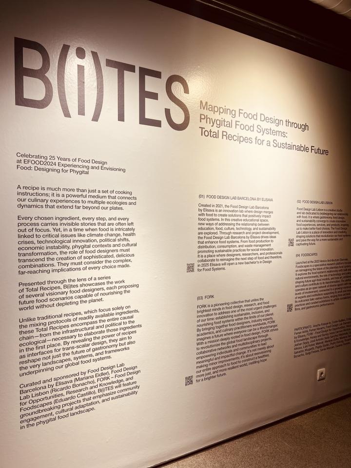 B(i)TES was built on multi-level collaboration, engaging stakeholders across local, regional, national, and European contexts to shape a holistic and impactful vision for food design. At the local level, food designers, artists, chefs, and researchers contributed speculative recipes that reflected food's cultural, ecological, and political dimensions. Community organizations and activists provided grassroots perspectives, ensuring that food sustainability and accessibility remain central to the project. At the regional and national levels, institutions such as ELISAVA, Food Design Lab Lisbon, FORK, and Foodscapes played a key role in curating and structuring the exhibition, fostering interdisciplinary exchanges. Collaborations with policymakers and food innovation hubs strengthen discussions on design-driven approaches to sustainable food systems, influencing public discourse and potential policy shifts. At the European level, B(i)TES connected with international networks of food designers, academic institutions, and cultural organizations, amplifying the conversation on phygital food systems and regenerative futures. This broad engagement facilitates knowledge sharing, encourages cross-border initiatives, and positions food design as a tool for systemic change across diverse socio-political landscapes. By integrating stakeholders at all levels, B(i)TES fosters a dynamic, co-created ecosystem, ensuring that design solutions for food are both visionary and deeply embedded in real-world needs, making it a model for interdisciplinary collaboration and systemic impact.