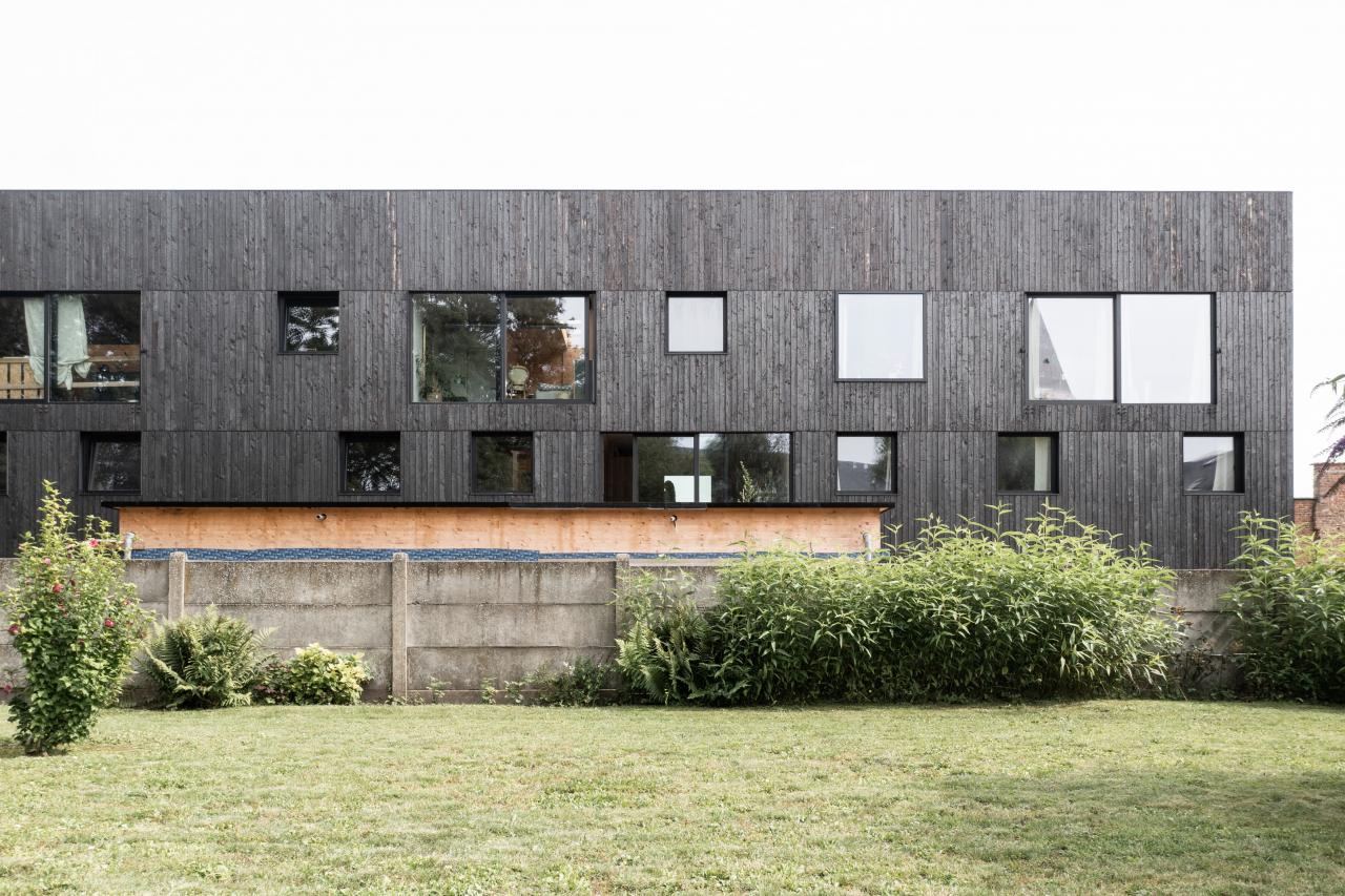 Designed through a co-creation process with the inhabitants, this project combines housing, offices, and shared spaces (garden, kitchen, guest room, etc.). Located in the Saint-Servais district in Namur, the site connects directly to the station via the Ravel, promoting sustainable mobility. A parking area also serves as a buffer between the main road and the building.